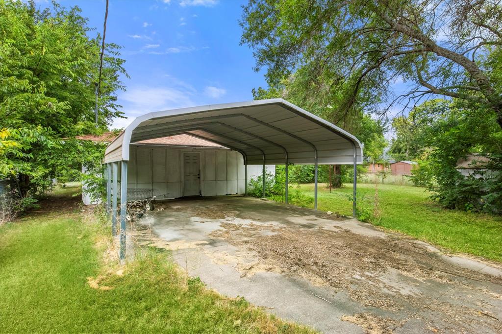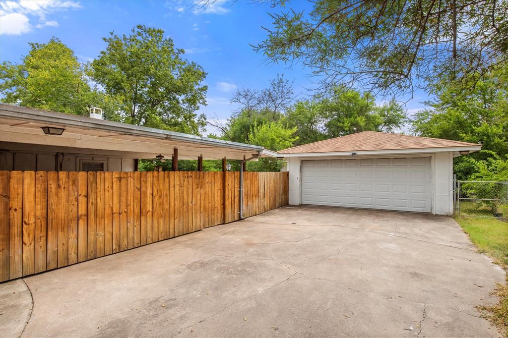 This beautifully maintained 3-bedroom, 2-bath home blends vintage charm with modern updates. Located in a quiet, tree-lined neighborhood with mature landscaping, this single-story ranch offers comfortable living and convenience. Inside, enjoy brand-new flooring throughout, spacious living areas, and a functional layout. Outside, there's covered parking perfect for a boat or RV, plus two generous storage rooms for all your extras. A rare find with space, shade, and character! This property offers an oversized garage with a room and half bath attached. Car guys dream. Room for your boat, ATV and other toys. AND there is a carport beyond the garage. It has a much more updated feel in person. Oversized garage with half bath and attached rooms present the opportunity for multi-generational space or the prime MAN CAVE. Large covered patio. Located within walking distance to Watkins Park to enjoy a lovely playground, basketball courts and walking path that is lit at night. Just off Red Oak road with easy access to I-35