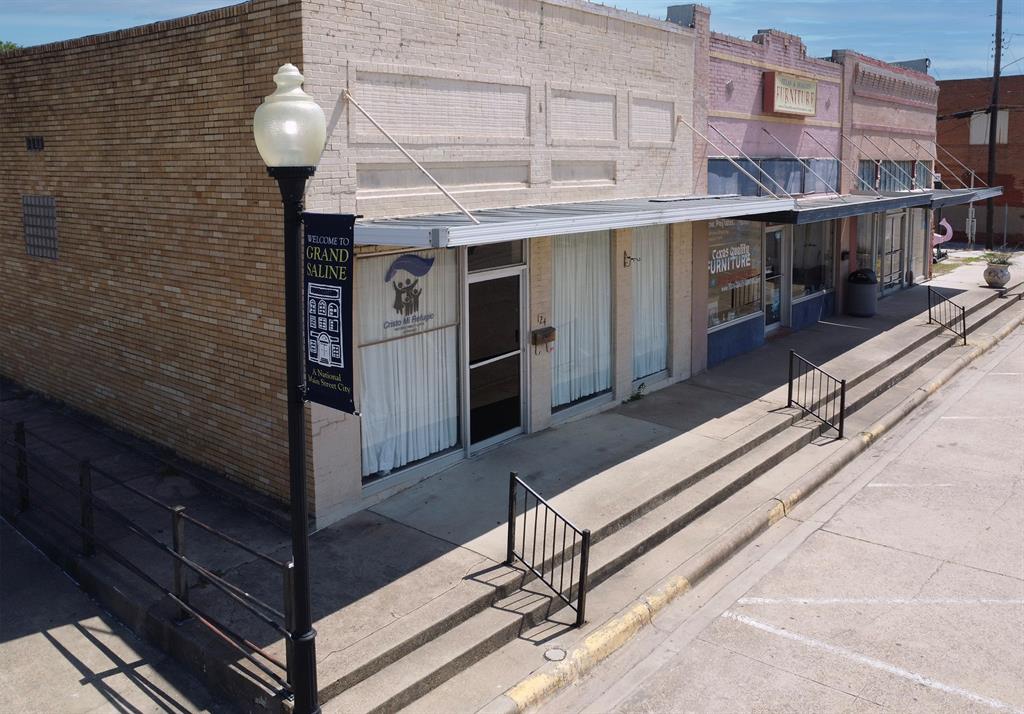 Commercial building with adjacent vacant lot for sale in the heart of Grand Saline’s historic downtown. Ideal for retail, office, or mixed-use development with great visibility and foot traffic.
