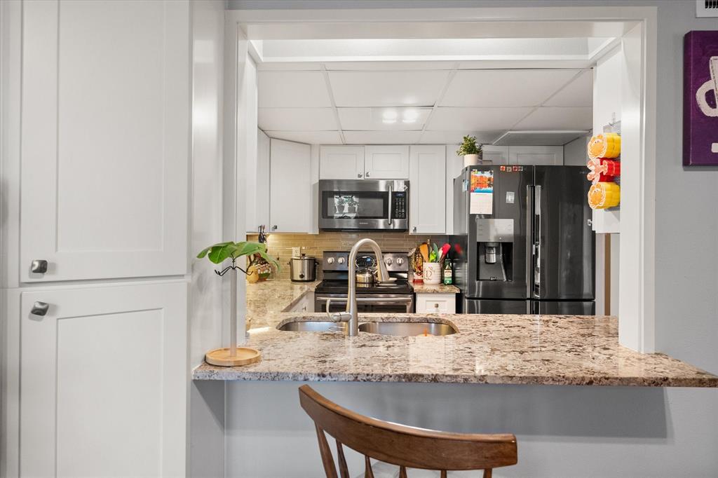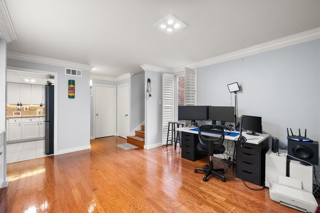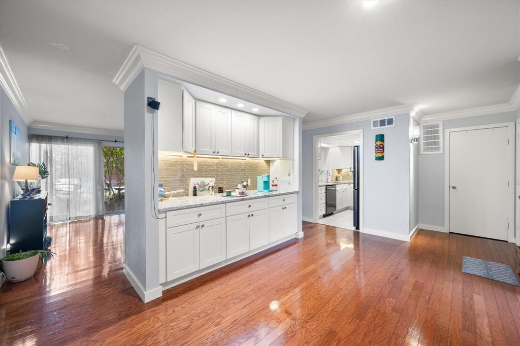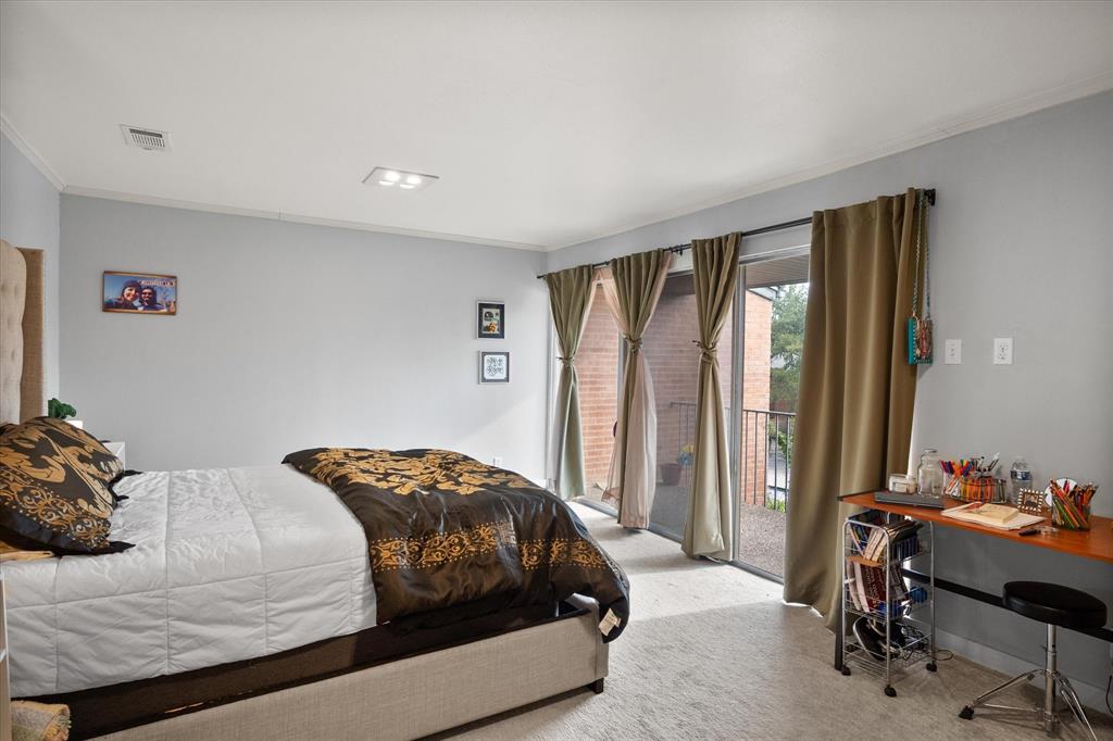 Step into this updated condo and discover a home that’s been thoughtfully designed. The flexible floorplan is configured with two spacious living areas, perfect for entertaining or relaxing. The front room, featuring built-in cabinetry, could easily serve as a formal dining room, home office, or cozy library—tailored to your lifestyle needs. The kitchen features granite countertops, designer backsplash, Shaker-style cabinetry, and stainless steel appliances. The adjoining living room offers an open-concept layout with rich wood flooring, elegant crown molding, and ample natural light. Retreat to the primary suite, where you’ll find a spacious sitting area and updated bathroom with dual sinks and a large walk in shower. A secondary bedroom, bathroom, and private balcony are also on the second level. This condo is equipped with two AC units, one unit was replaced July 2023. Enjoy access to a host of community amenities, including a beautiful swimming pool and a fully equipped fitness center, perfect for maintaining your active lifestyle. Located in a prime location with quick and easy access to Highway 360 and I-30, you’re just minutes from shopping, dining, entertainment, and major employers—making this home as convenient as it is charming. Don’t miss your chance to own this move-in ready home!