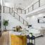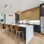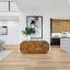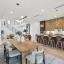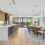 The designer chef’s kitchen is a showstopper: sleek custom walnut cabinetry, quartz waterfall island, premium appliances, and Tom Dixon designer lighting set the stage for everyday elegance and upscale entertaining. The spacious living area flows seamlessly into a private patio, creating an indoor-outdoor experience that’s rare for the area.