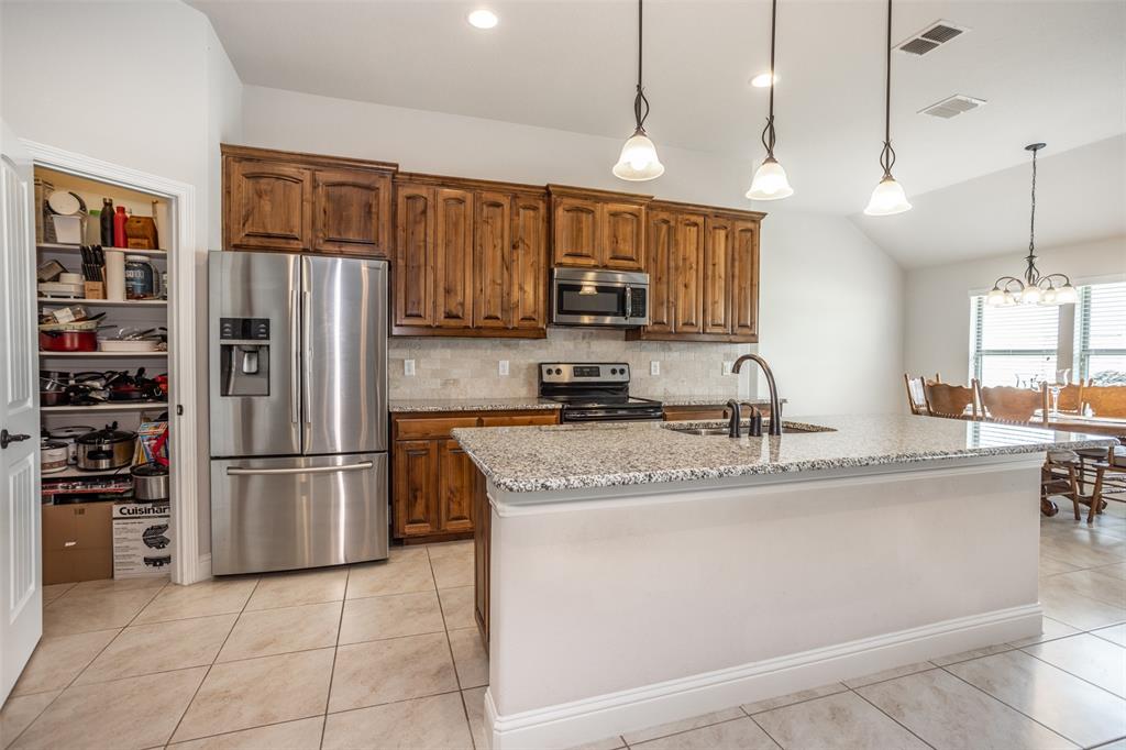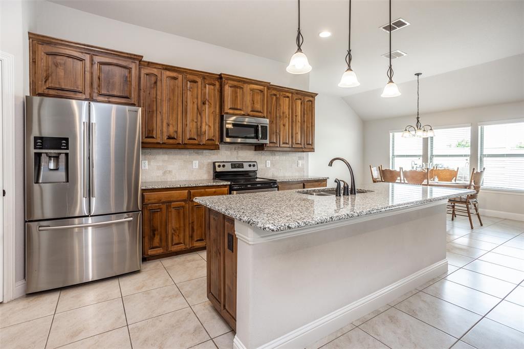 McBee Home, 3 car tandem garage, Open-plan concept, Chef's dream Kitchen, Beautiful stained real wood cabinets, Large walk-in pantry, seperate utility room with built-in cabinets. Stunning ding room overlooking the beautiful backyard, Ding area is very large and will accommodate large table. Lovely warm and inviting Living Room, wood burning fireplace, cedar accent cathedral ceiling. Three secondary bedrooms are located off the Living area. The luxe owner’s suite is tucked into a private corner at the back of the home. Large walkin closets. Covered patio, Large backyard for entertaining, Storage building for all the lawn equipment. Nestled in a community known for its family-friendly vibe, Reatta Ridge offers walking trails, a community pool, playgrounds, and access to highly rated Northwest ISD schools. Enjoy the small-town charm of Justin with quick access to Alliance, Denton, and Fort Worth.