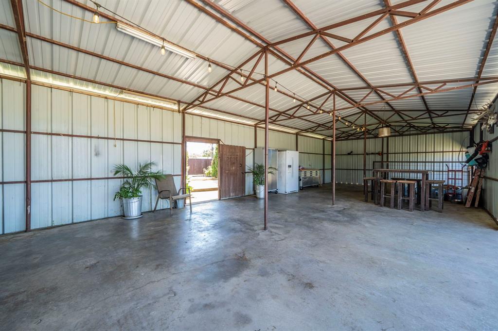 Adjacent to the house is a 3-car detached parking structure that includes storage space, currently used as a recreation area. A fun outdoor living space has been created behind the building, with landscaping, space for grilling, a garden area, and outdoor seating underneath the building’s awning. Additional improvements include a 38x40 metal horse barn with 3 stalls, a 40x42 metal shop building with an 18x42 covered equipment shed with 30amp breaker, and a separate 20x20 covered equipment or RV parking space with a 50amp breaker.