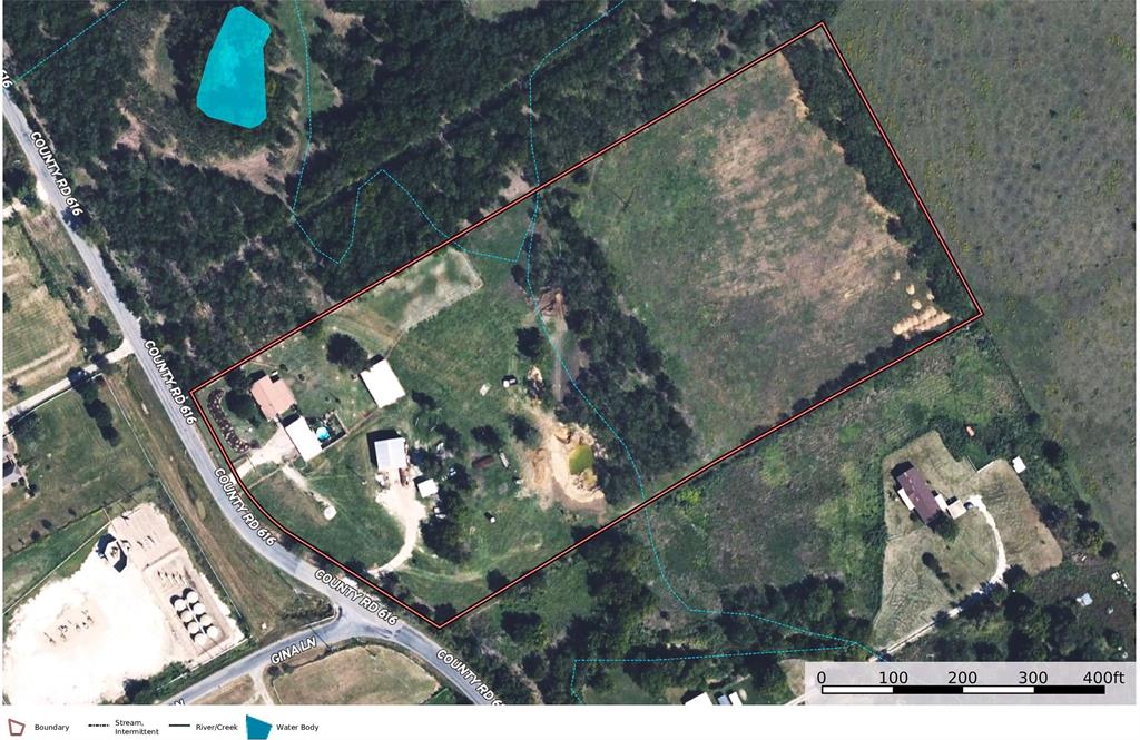 The terrain is level and primarily open, with scattered trees around the improvements as well as trees along a seasonal creek and the boundary lines. The property is fenced and cross-fenced for livestock, with some pipe fencing, and there are three runs adjacent to the barn. Surface water includes one pond. Approximately 3.6 acres at the front of the property fall in the floodplain. The location offers 498 ft of road frontage along CR 616. One JSUD water meter and three electric meters onsite. Alvarado ISD. Ag exempt.