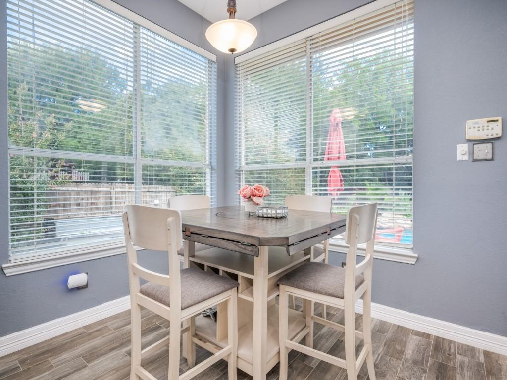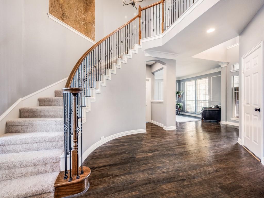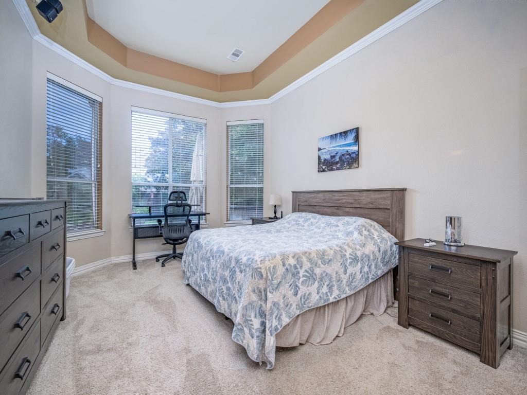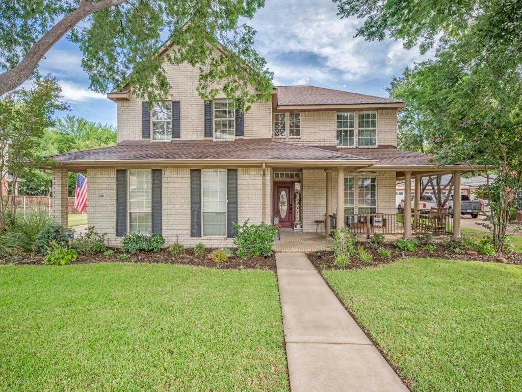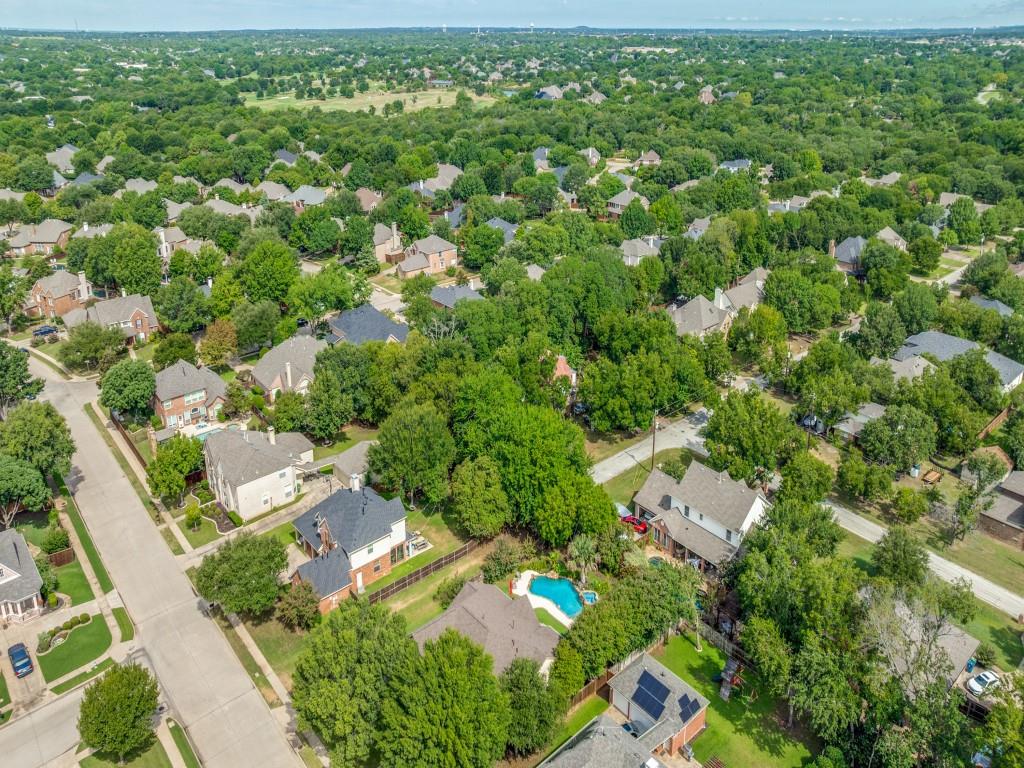 Luxurious 5-Bedroom Home with Saltwater Pool in Bridlewood Golf Community. Located on a quarter acre lot in the prestigious Bridlewood golf course community, this beautifully updated 5-bedroom, 4-bathroom home offers luxury, space, and functionality—all within top-rated Flower Mound schools. The thoughtful floor plan features the primary suite, a secondary bedroom, two living rooms and a dining room on the main level, with three additional bedrooms, two bathrooms and a spacious game room upstairs. Step inside to find rich hand-scraped hardwood flooring, a warm and inviting living room with fireplace, and a gourmet kitchen featuring quartz countertops, stainless steel appliances, double oven, and abundant cabinetry. The primary suite offers a spa-like retreat with dual sinks, a soaking tub, large walk-in shower, and a spacious walk-in closet. Upstairs, three generously sized bedrooms are thoughtfully split for privacy. One features its own ensuite bathroom—perfect for guests—while the other two share a bathroom with dual sinks. A spacious game room with French doors separates the upstairs bedrooms, creating a retreat for kids or a relaxing living space for guests. Enjoy your own private backyard oasis complete with a saltwater pool and spa, tanning ledge, waterfall, and meticulously landscaped grounds. A 3-car garage provides plenty of space for parking and storage. Some of the recent updates include a new roof (2025), 2 AC units (2021 and 2022), additional blown-in attic insulation and pool pump motors and valves. Bridlewood residents enjoy community amenities galore, including access to golf, parks, playgrounds, pools, fitness center, sports facilities, and trails. This home truly has it all.