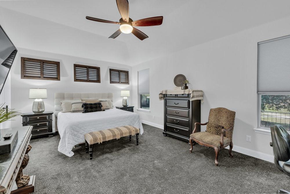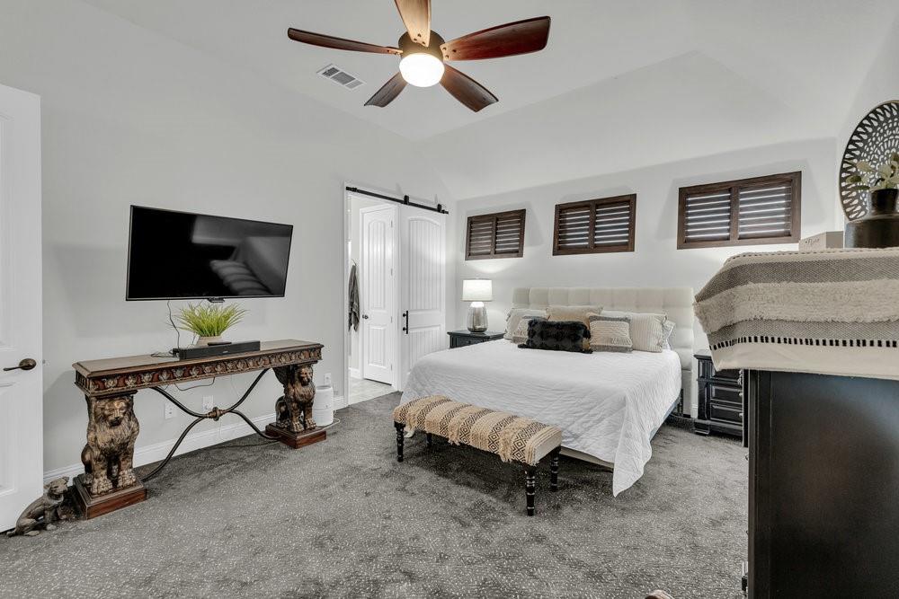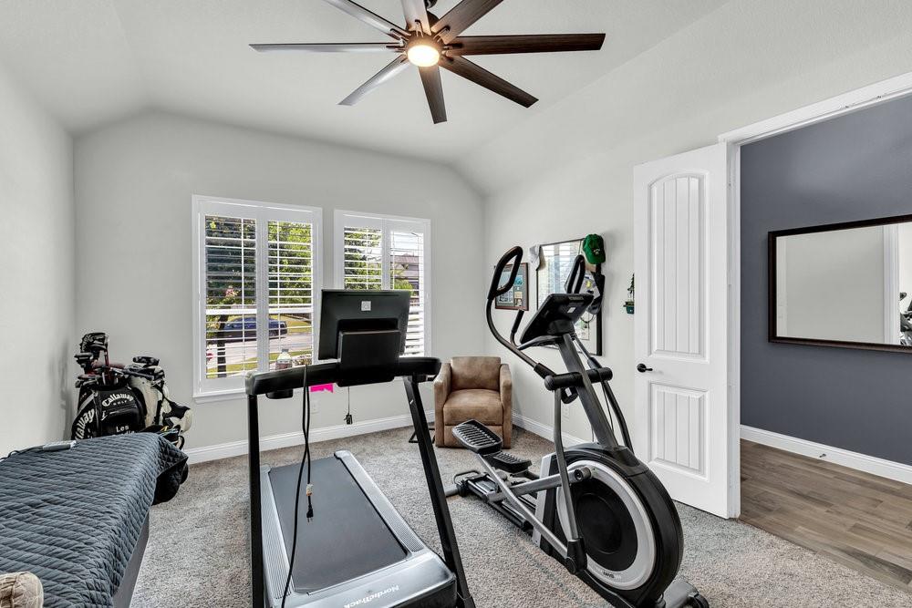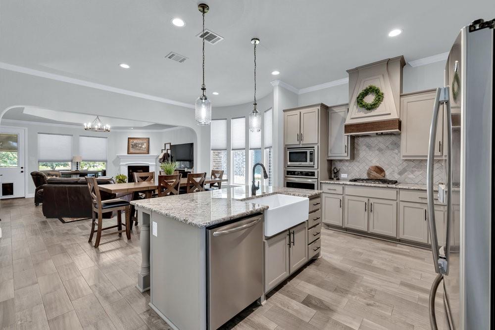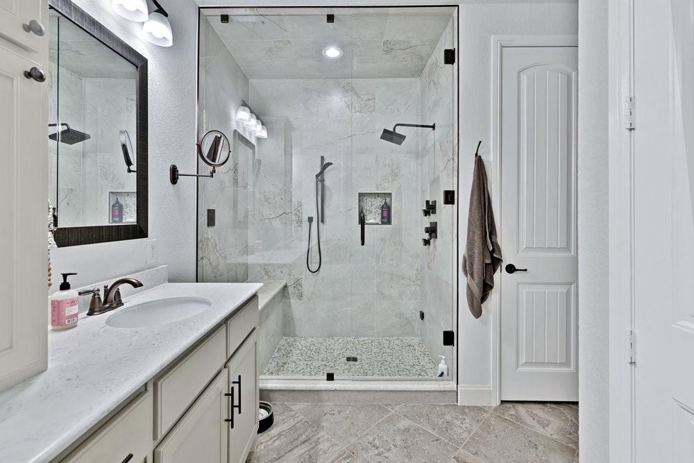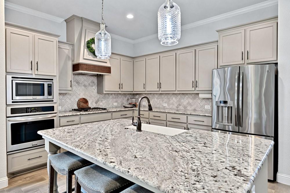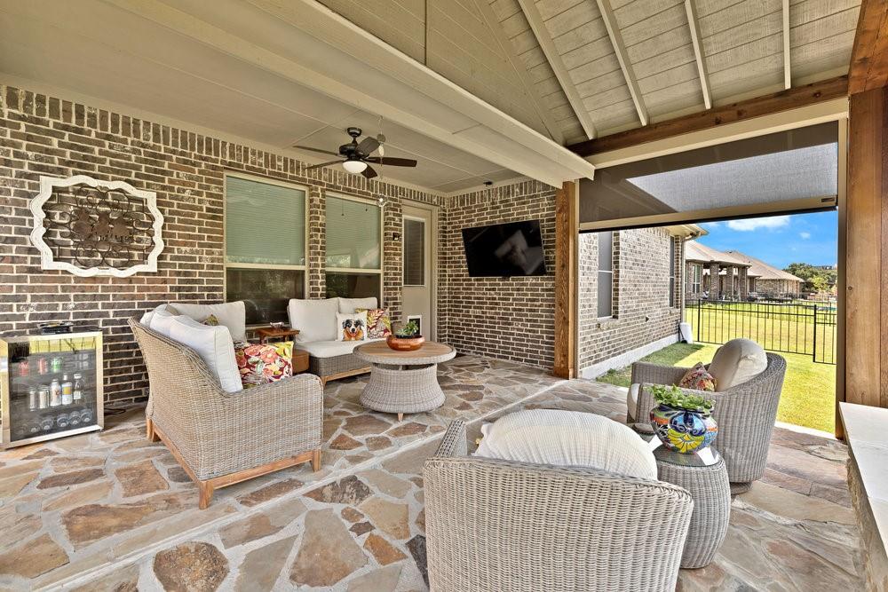 This thoughtfully upgraded 3-bedroom, 2.5-bath home blends style and comfort with modern finishes throughout. Inside, 8-foot doors create a spacious, elegant feel, while shiplap accent walls in the extra bedroom and primary suite add custom charm. The kitchen is a standout, featuring a large island, an upgraded coffee bar with herringbone tile detail, and cedar shelving for warmth and character. The primary suite offers a spa like retreat with an oversized steam shower and dual walk-in closets for His & Hers. The garage has been expanded by 5.5 feet and finished with epoxy floors, full insulation, and air conditioning—ideal for a workshop, gym, or extra storage. Step outside to enjoy the extended covered patio 14 X 17 with remote-controlled screens, all while taking in serene views of the golf course, perfect for relaxing or entertaining year round. You must see this one of a kind home in fossil creek. Convenient to I35, shopping and restaurants.