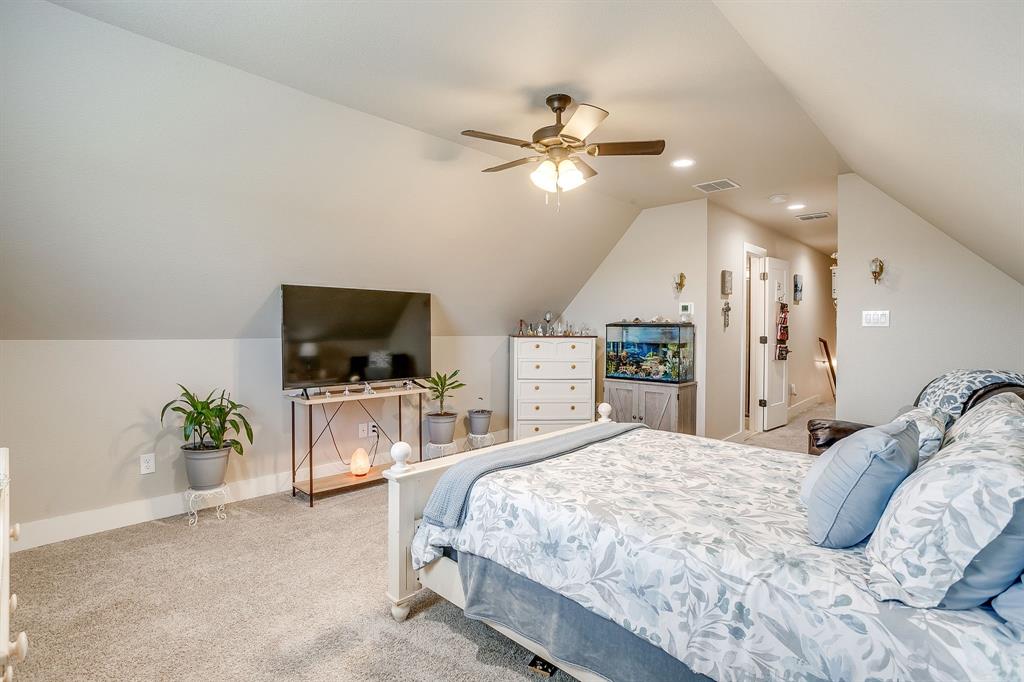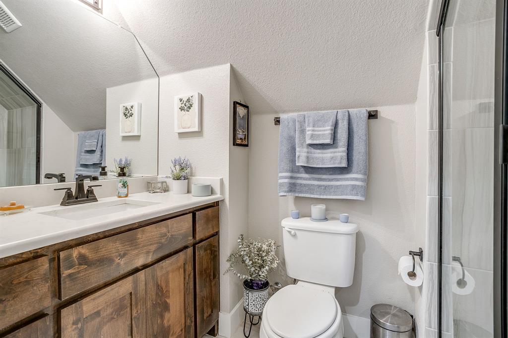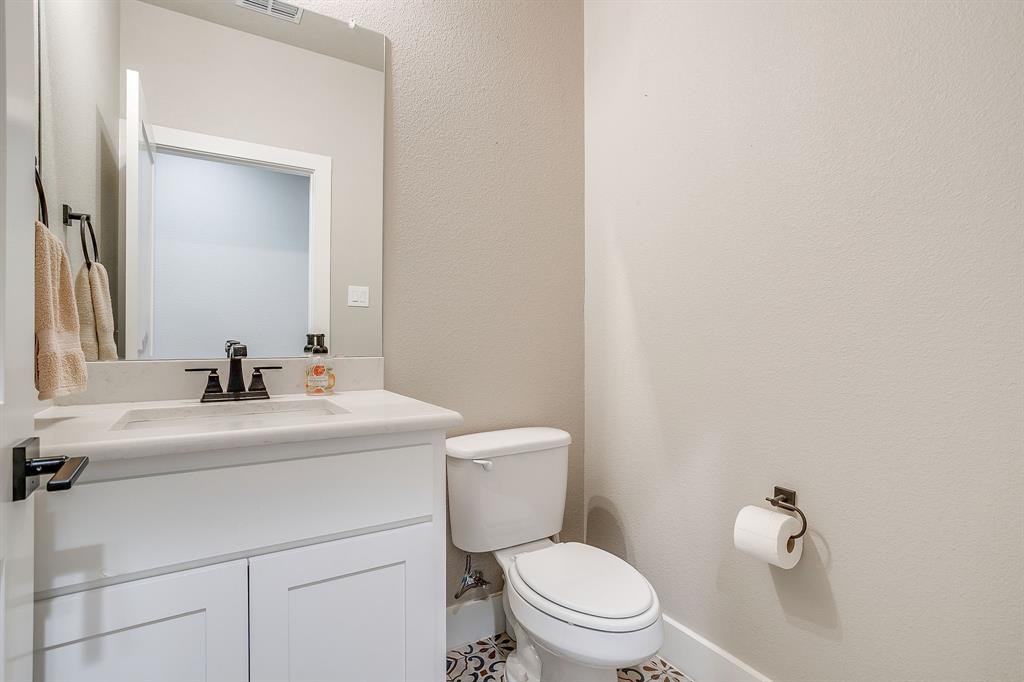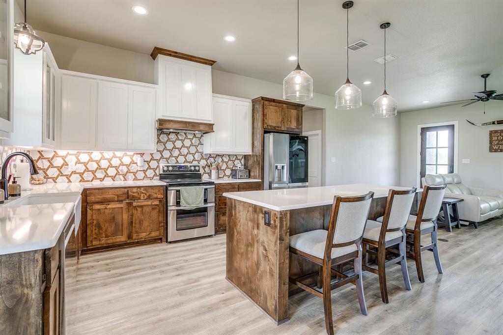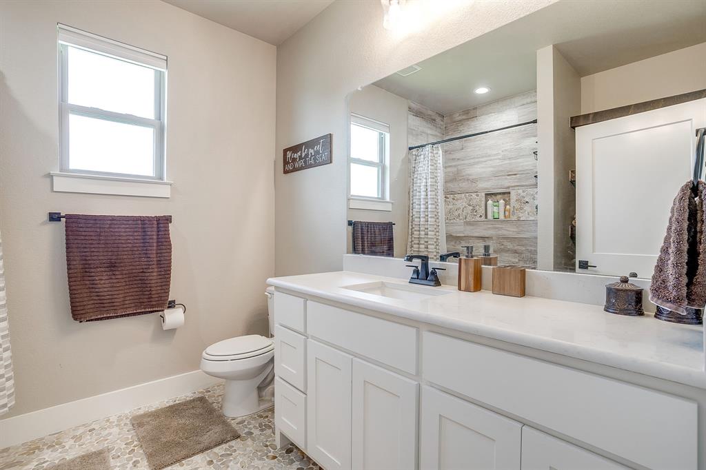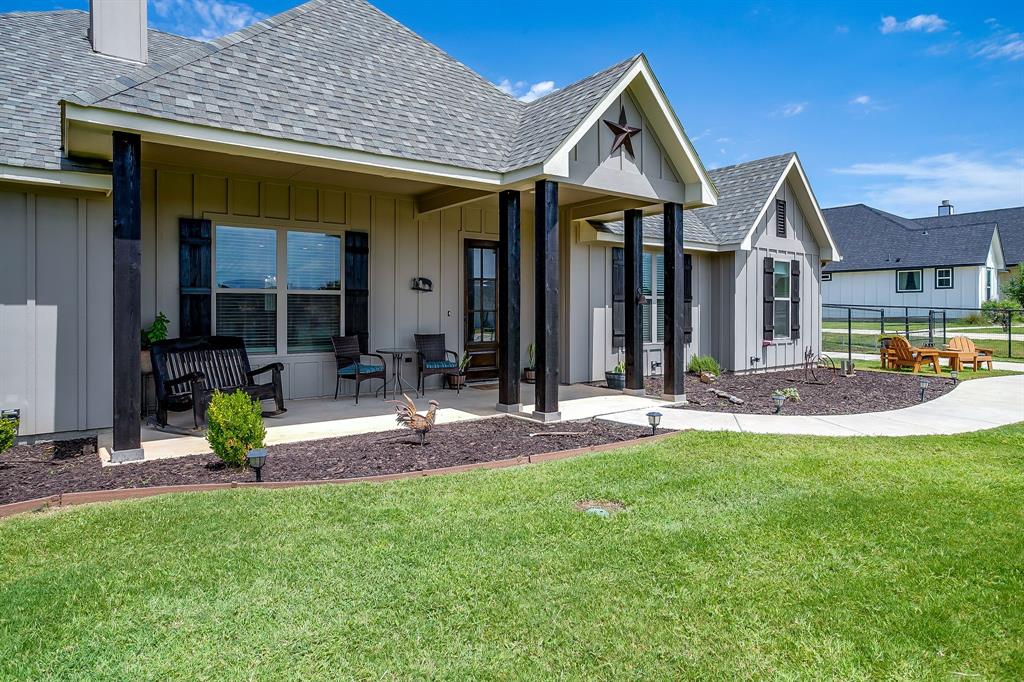 WELCOME HOME! This farmhouse style home on 1-acre in El Dorado Estates is nestled in a quiet cul-de-sac! Enjoy a sparkling pool with water feature with a covered back patio. The entry to the property is gated and the entire property is fenced with a cross fencing feature. There is minimal HOA with chickens allowed! As soon as you walk past the front porch, you are instantly welcome to an open-concept layout with a cozy fireplace and floating shelves in the living room. It is so bright and airy! The kitchen is GORGEOUS with two-toned custom cabinetry, double oven and a sought-after white ceramic farmhouse sink that overlooks the backyard. You will be IMPRESSED by the oversize pantry and laundry room! This split floorplan is convenient with the primary bedroom having a direct connection from the laundry to the closet. Sleek white cabinets with a vanity feature and calming materials for the bath! The secondary rooms are spacious with their bathroom in between both bedrooms. Upstairs is set up as a mother-in-law suite with full bathroom and closet, but it can be used as a game room or theatre room! There is a door at the bottom of the stairs to close it off. This backyard is JAM-PACKED with functionality and usage. Not just the pool, but the back patio, accessibility to the garage, dual fans and plenty of space for animals in the cross fenced area. This property has it ALL! Come check it out!