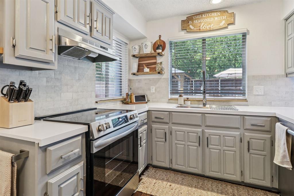 GORGEOUSLY UPDATED home in well established neighborhood. You will not get more bang for your buck than this home. With all new paint, flooring, electrical panel, electrical outlets and switches, solar screens for energy efficiency and privacy, OPEN kitchen remodel with new stove and oven, NEW ROOF, and more. This home is move-in ready. The downstairs bathroom has been recently updated. All bedrooms boast oversized windows and either new carpet or new luxury vinyl flooring. The backyard oasis is perfect for relaxing privately after a long day or hosting a gathering of friends. All fountains and lighting stays with the home. You'll love this home from the moment you step under the new custom front porch until you see the gorgeous 9.5 deep blue sparkling pool and covered patio.