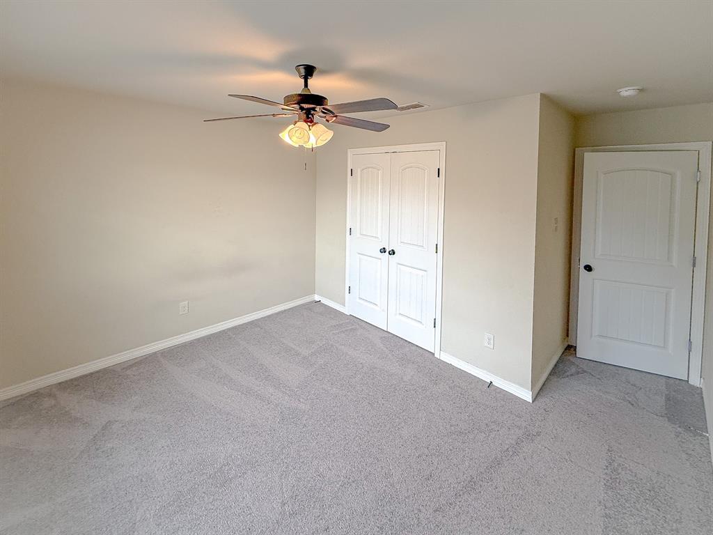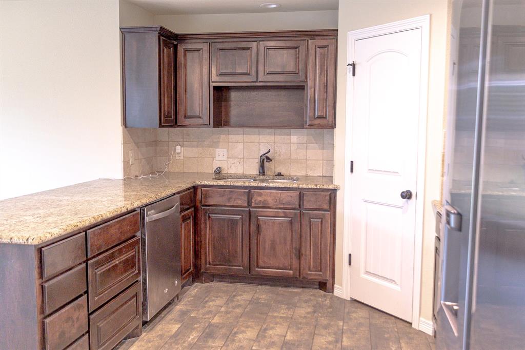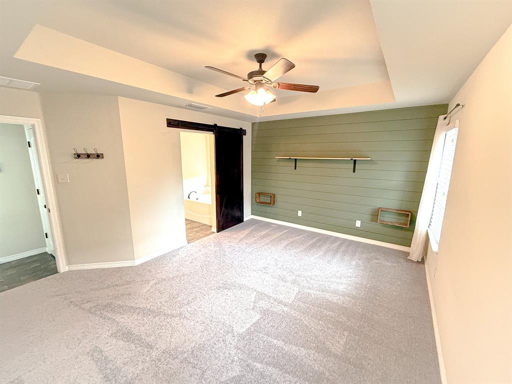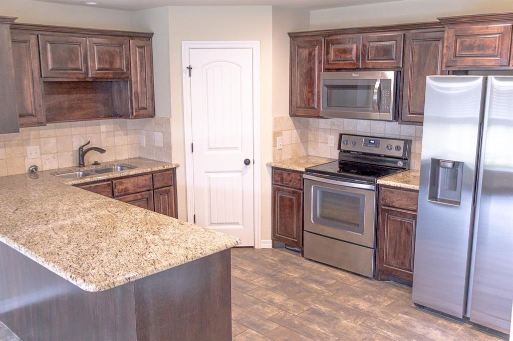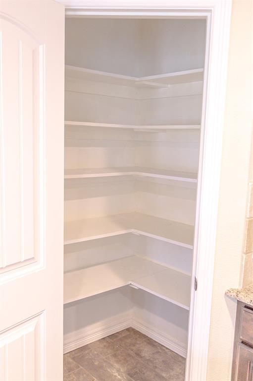 granite countertops, custom cabinets, stainless appliances, trash pullout and walk-in pantry. Primary suite has a barn door