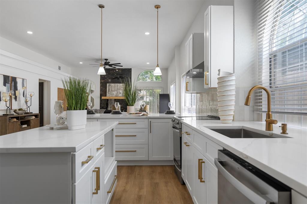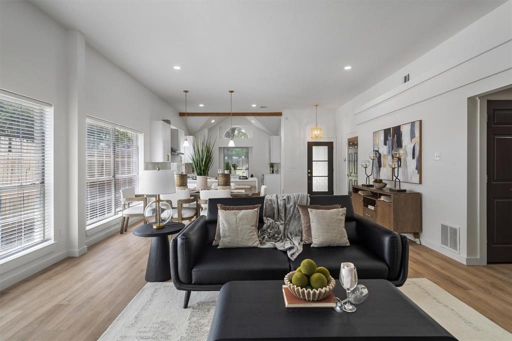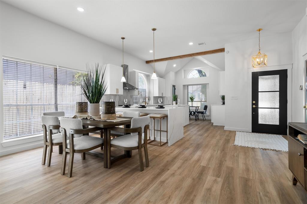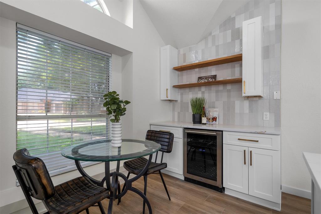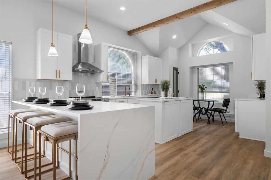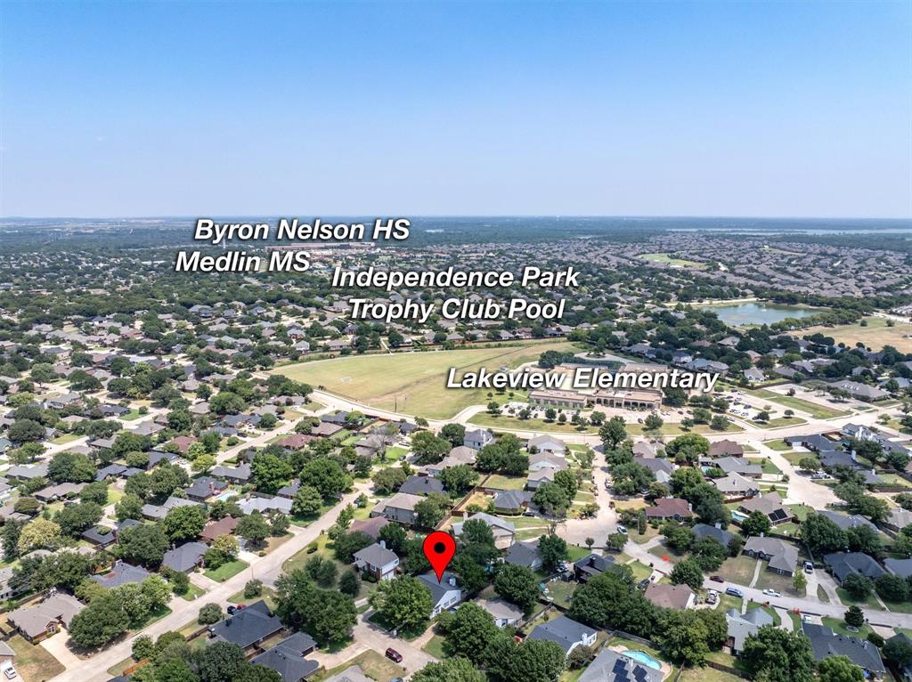 Beautifully & Completely UPDATED 3 bed, 2 bath open concept home in Northwest ISD. 2025 updates include an updated kitchen with stunning quartz countertops, white kitchen cabinets complete with champagne gold hardware, designer light fixtures, and a wine fridge. Secondary & primary bathrooms have been completely remodeled with a frameless shower and stand alone tub. Gorgeous light oak LVP flooring throughout the whole house (no carpet), cedar beams in living areas and primary bedroom, stunning living room fireplace makes for a gorgeous and updated statement, fresh interior paint, white painted exterior brick, new sod and landscaping, and much more. Perfect location: 1 block from the elementary schools and playing fields, less than 1.5 miles to parks, swimming, all grade level schools, as well as dining and shopping. Independence Park, which offers baseball fields, tennis, and playgrounds, as well as Town of Trophy Club's pool (splash pad, diving & slides) is right down the road. Elementary, Middle, & High Schools all within a 1.5 mile radius.