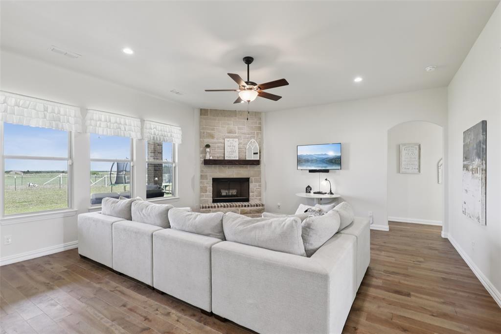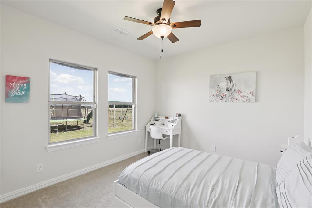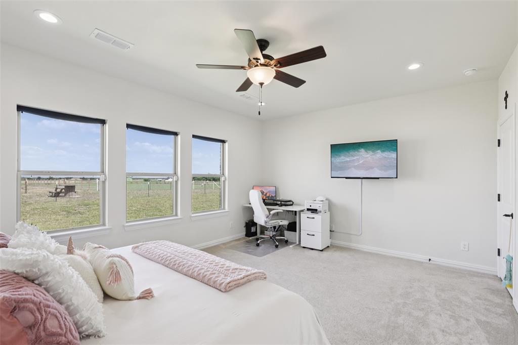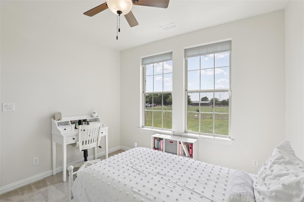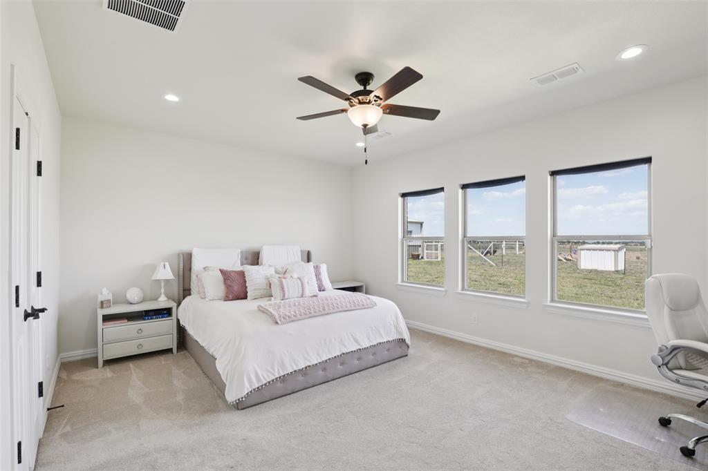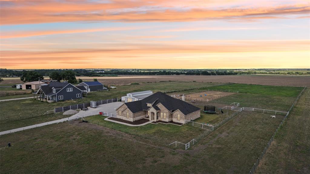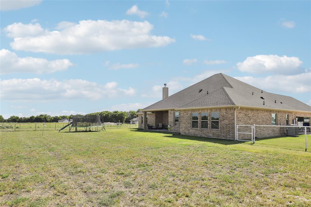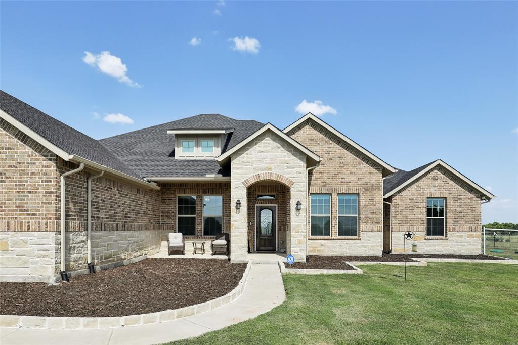 Horse Property!!! Gorgeous & barely lived in, 4 bedroom (plus Study) home-ranch on a peaceful 5 acres just 20 minutes from Mckinney or Greenville. This Ranch features a custom barn with 6 custom stalls. The barn is equipped with electric and water inside & out. Outside the barn is a riding arena and fenced & cross fenced the pasture. Back at the house, hang out on the covered front porch or covered back patio and watch the horses, goats, chickens or whatever farm animal you want to bring. to this property. The open floorplan is great with a 3 way bedroom split. Enter and the study is one your left. Then admire the big family room boasting a floor to ceiling stone fireplace. The family room is open to the large kitchen with granite counters, tons of cabinets, double convection-smart ovens & a huge walk in pantry by the light & bright dining area with built in book shelves (perfect for homeschooling). The ample sized primary bedroom has peaceful views of the pasture and nature at it's best. The Luxe spa-like primary bath has a stand alone tub & oversized shower plus opens to the Texas sized Laundry Room. Convenient half bath allows the secondary bath to be used only for family. Plus, the handy Mud Room keeps the rugrats from tracking nature into the home. Carpet is only in the bedrooms with light colored wood floors throughout the living areas and ceramic tile in the baths. Additional features are incredible ... The foundation is a piered slab, so this home is not going to move! Foam insulation, 3 car garage with finished garage floor, water softener & reverse osmosis water purifier sprinkler system, aerobic septic and so much more make this the ranch you have been looking for. Qualifying assumption is available for Veterans Only with their VA entitlement available!