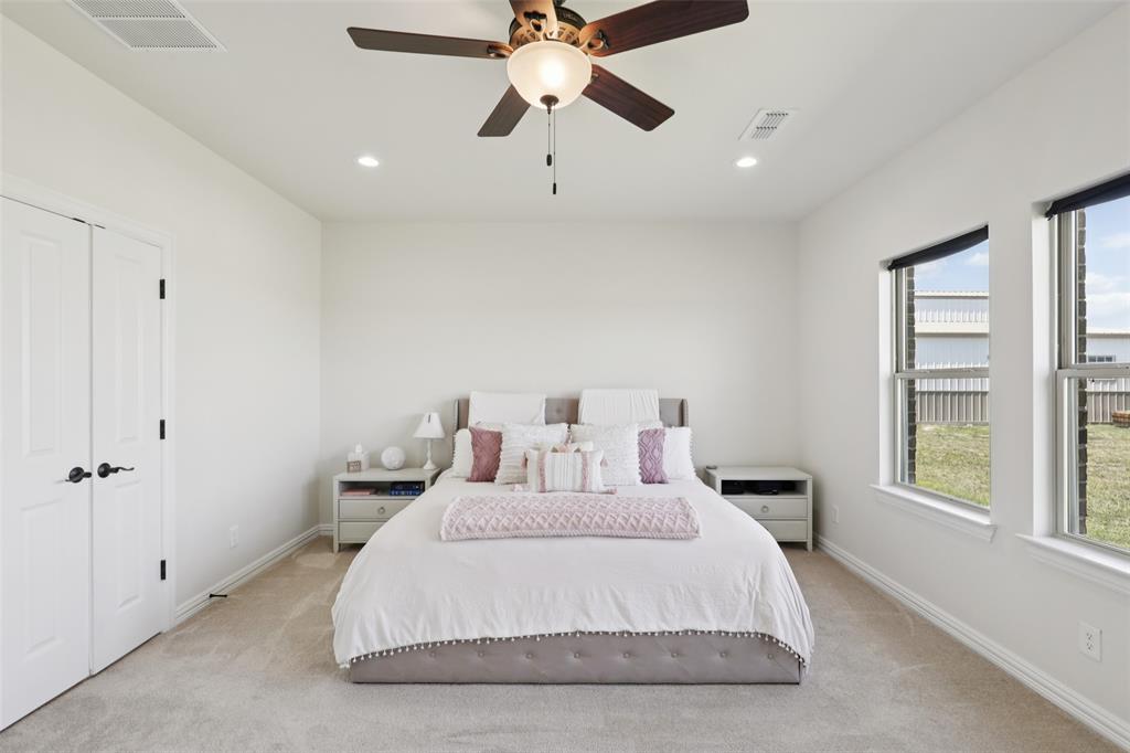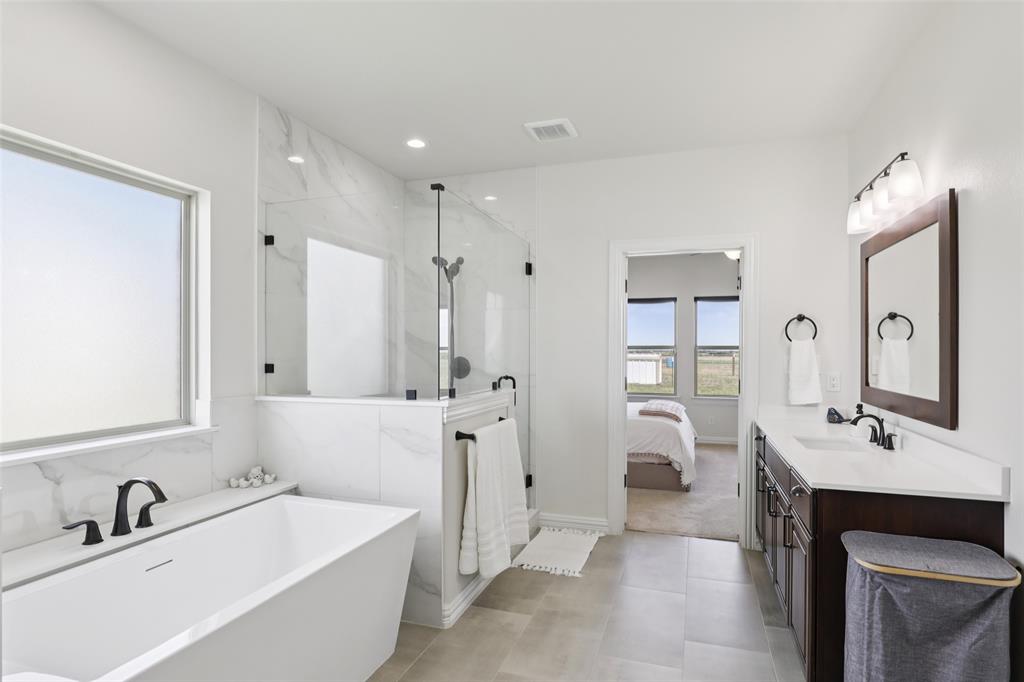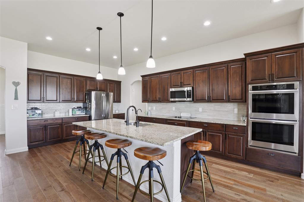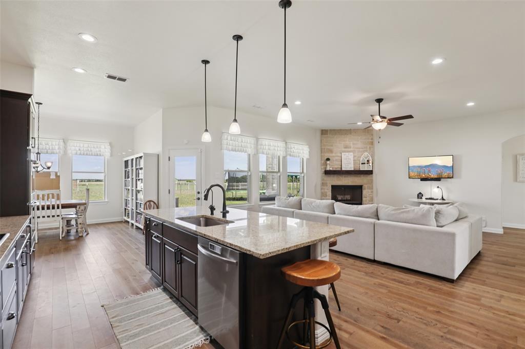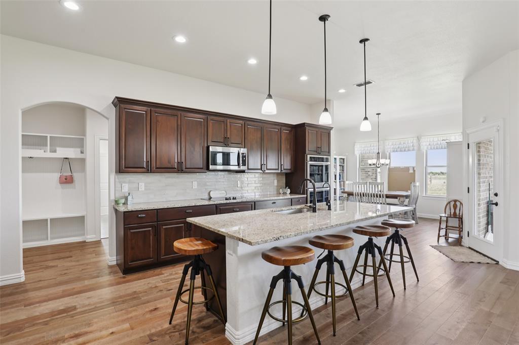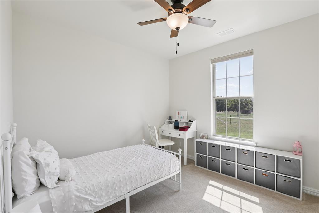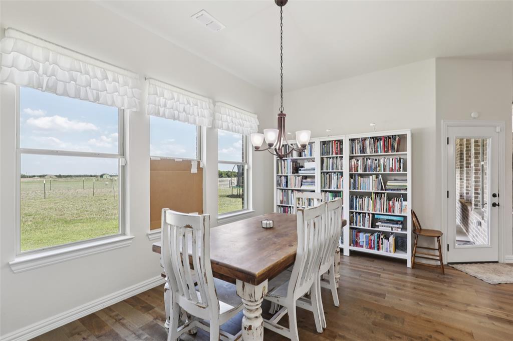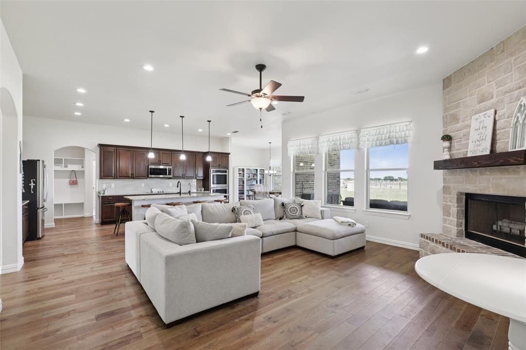 Horse Property!!! Gorgeous & barely lived in, 4 bedroom (plus Study) home-ranch on a peaceful 5 acres just 20 minutes from Mckinney or Greenville. This Ranch features a custom barn with 6 custom stalls. The barn is equipped with electric and water inside & out. Outside the barn is a riding arena and fenced & cross fenced the pasture. Back at the house, hang out on the covered front porch or covered back patio and watch the horses, goats, chickens or whatever farm animal you want to bring. to this property. The open floorplan is great with a 3 way bedroom split. Enter and the study is one your left. Then admire the big family room boasting a floor to ceiling stone fireplace. The family room is open to the large kitchen with granite counters, tons of cabinets, double convection-smart ovens & a huge walk in pantry by the light & bright dining area with built in book shelves (perfect for homeschooling). The ample sized primary bedroom has peaceful views of the pasture and nature at it's best. The Luxe spa-like primary bath has a stand alone tub & oversized shower plus opens to the Texas sized Laundry Room. Convenient half bath allows the secondary bath to be used only for family. Plus, the handy Mud Room keeps the rugrats from tracking nature into the home. Carpet is only in the bedrooms with light colored wood floors throughout the living areas and ceramic tile in the baths. Additional features are incredible ... The foundation is a piered slab, so this home is not going to move! Foam insulation, 3 car garage with finished garage floor, water softener & reverse osmosis water purifier sprinkler system, aerobic septic and so much more make this the ranch you have been looking for. Qualifying assumption is available for Veterans Only with their VA entitlement available!