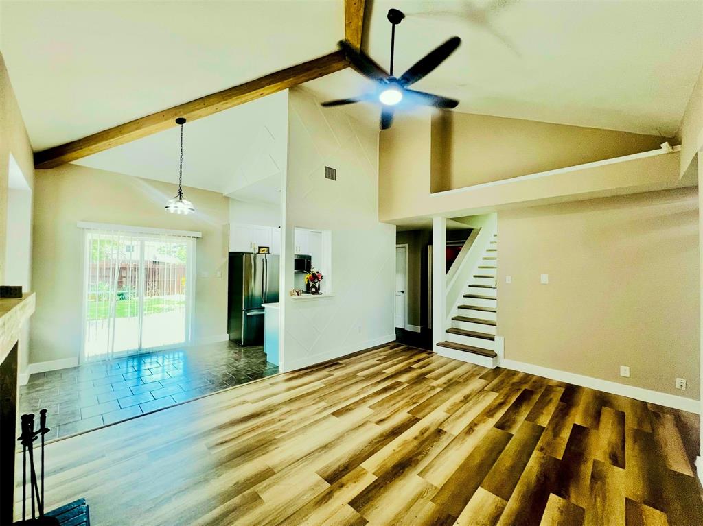 Welcome to this beautifully upgraded and move-in ready 3-bedroom, 2-bathroom gem that offers style, comfort, and functionality in every detail. Step into an inviting open floor plan featuring luxury wall panel accents and stunning decorative wood beams that create a custom, designer feel from the moment you enter. Enjoy Luxury Wood Vinyl Plank flooring in the living areas and stairway, paired with ceramic tile in the kitchen, bathrooms, and laundry room for both beauty and durability. The home boasts two cozy wood burning fireplaces, fresh interior paint, and upgraded bathrooms for a modern, refreshed look throughout. The gourmet kitchen is a chef’s dream with quartz countertops, an eye-catching backsplash, LED under-cabinet lighting, and modern fixtures throughout. Ceiling fans are installed in all bedrooms, and blinds are included for added privacy and comfort.