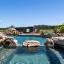 The chef-inspired kitchen is a highlight, featuring a central island, stainless steel appliances, and custom cabinetry. The adjoining dining area is perfect for hosting gatherings, offering easy access to the outdoor living spaces.