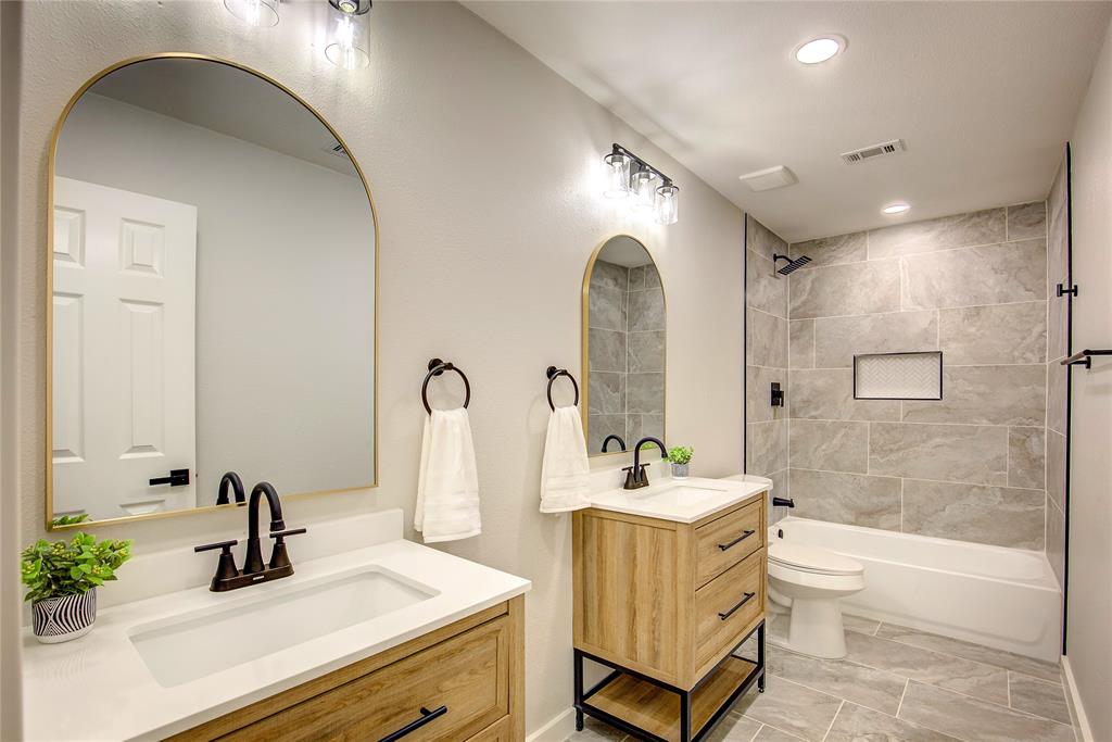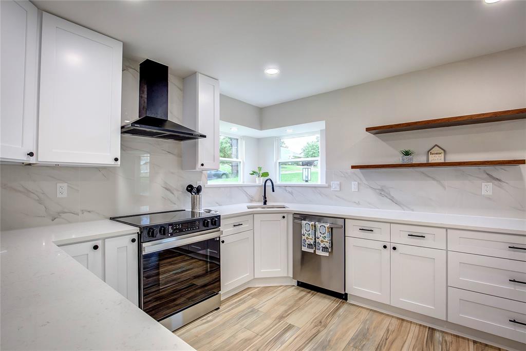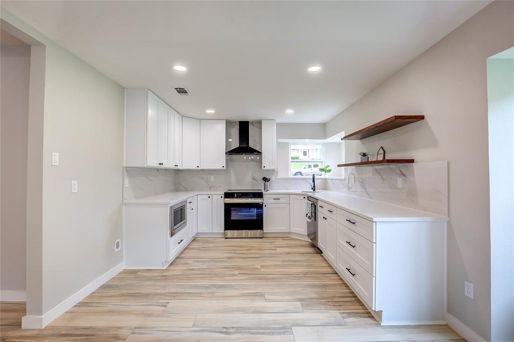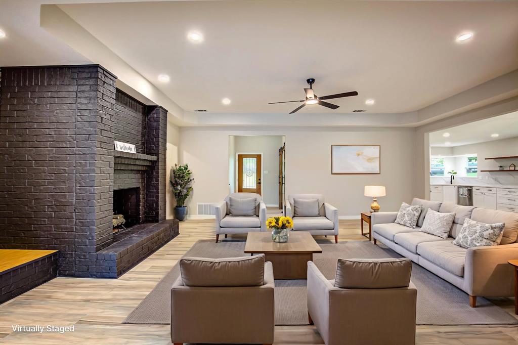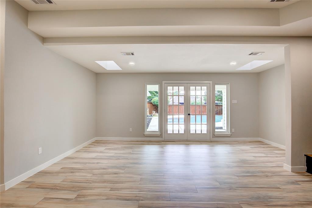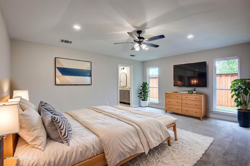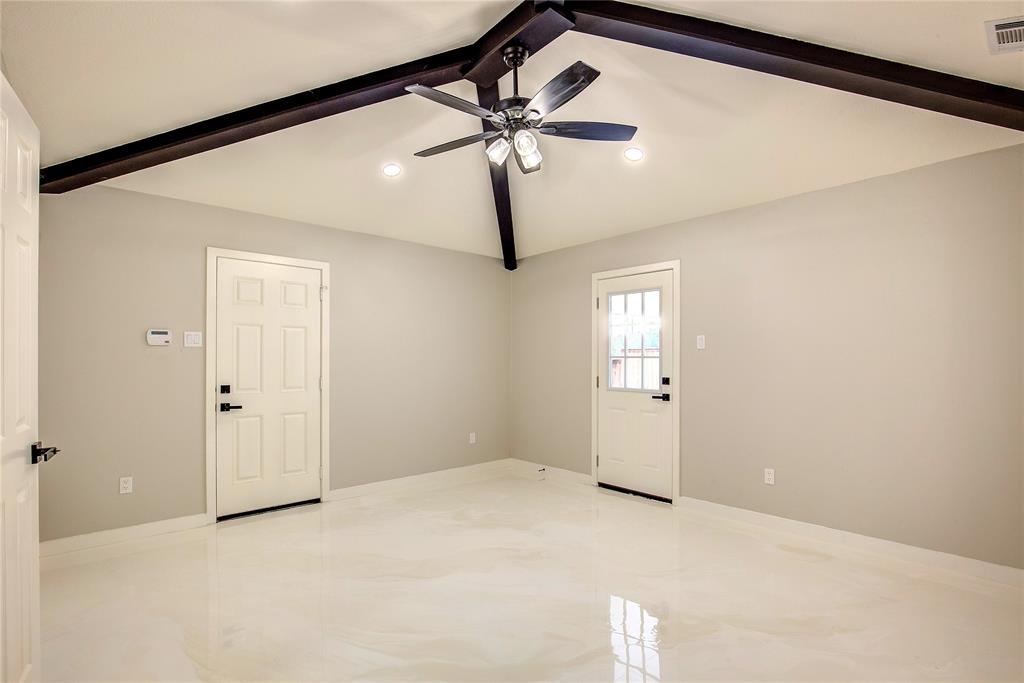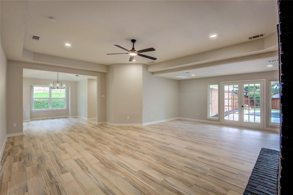 This move in ready gem offers comfort, efficiency, and a resort-style outdoor space all in a prime Garland location! This beautiful updated 4-Bedroom Home with Pool is combined with modern upgrades, comfort and functionality features, quartz countertops and backsplash in the kitchen, quartz countertops in all bathrooms, Stainless steel stove and microwave, epoxy flooring in the study and back bonus bedroom, New windows and screens for enhanced natural light and energy efficiency, Stylish black ceiling fans in all bedrooms, living room, and study, New cam lighting and updated light fixtures inside and out. Waterproof laminate plank flooring in common areas and new carpet in 3 bedrooms, Two car garage with low maintenance artificial grass in the backyard, Full washer and dryer included, with gas hookup for dryer, Gas water heater, gas fireplace, electric HVAC unit, and gas furnace, working sprinkler system in front and sides of the home.