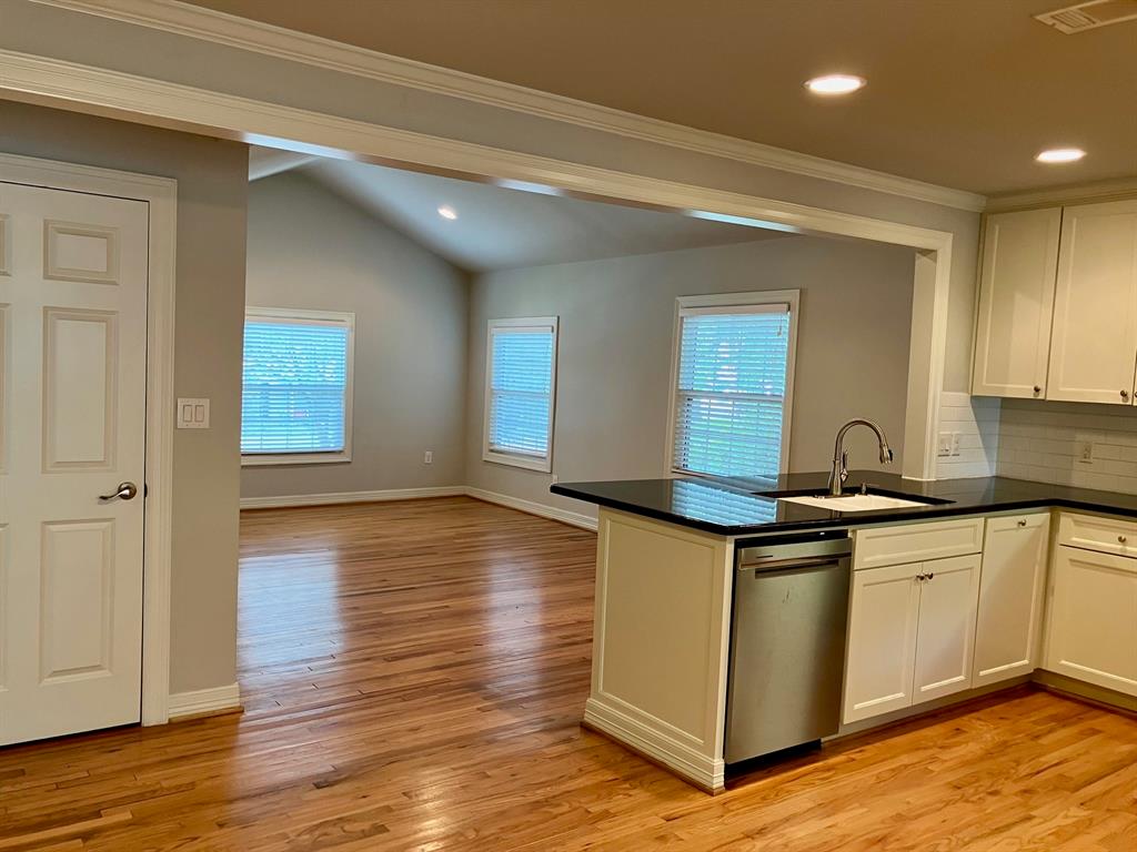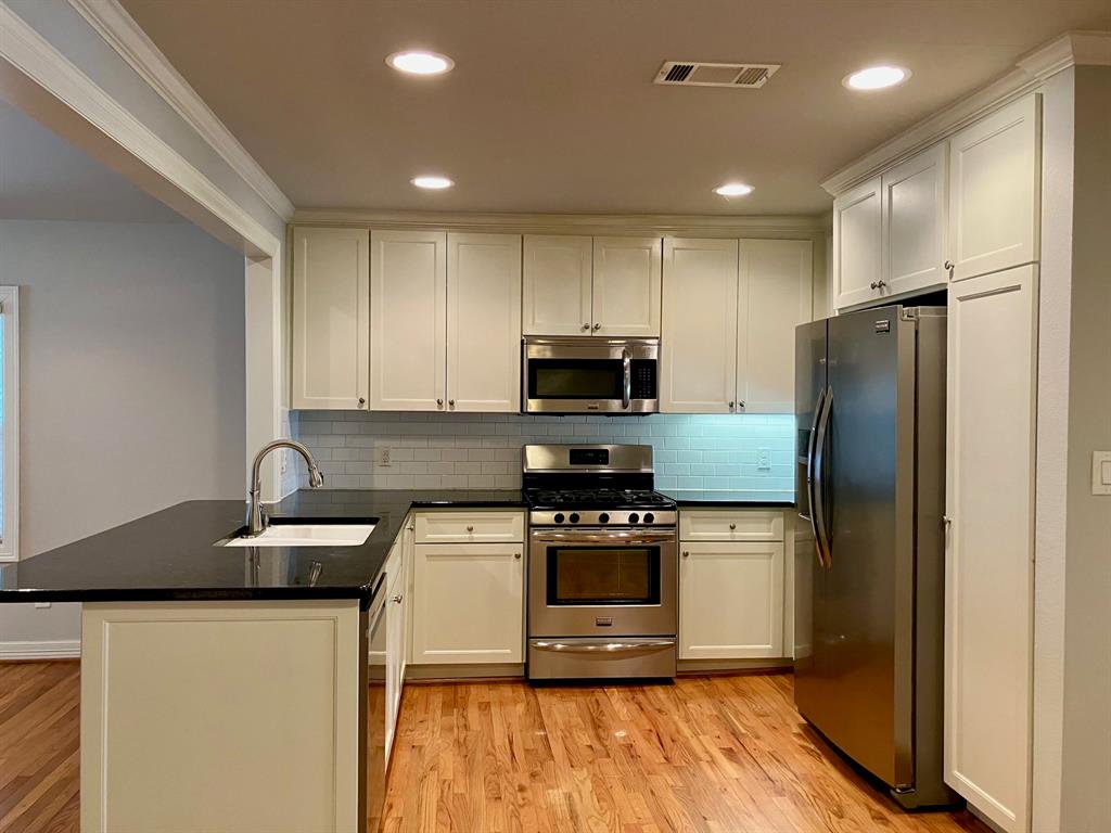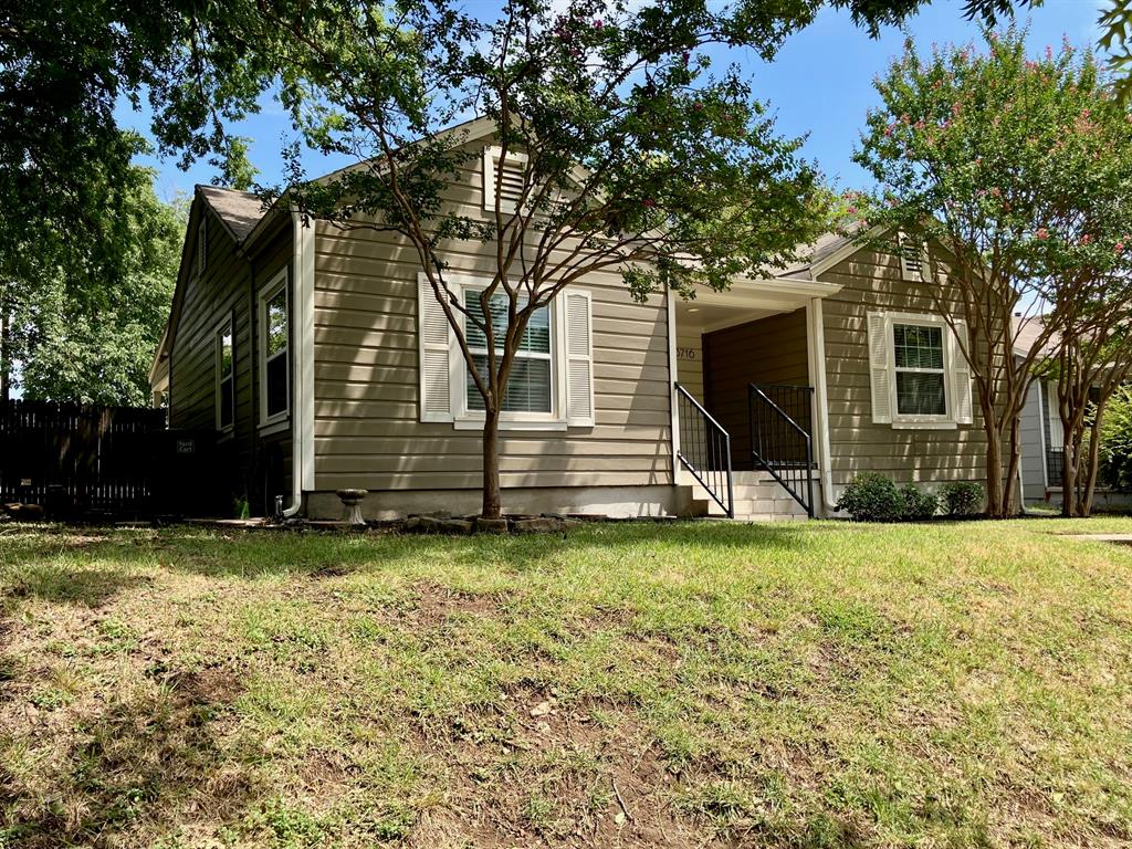 Superb value, location, and privacy! 3 bedr 2 bath home 1 block from Dickies Arena is a dream for a homeowner or quality renters. Renovated in 2016: new kitchen, primary suite, bath, roof, doors, paint, floors, granite, light fixtures, and more. Open floor plan, real hardwood floor in most areas, private covered front porch and back patio. Extra storage with gazillion closets plus a storage shed in the back. Luxurious main suite with built-in office space, double sink vanity, soaking tub, glass shower, huge walk-in closet is in the back of the house, while the 2 extra bedrooms with a charming bath are at the front. Just refreshed with new paint and carpet for you to move in and enjoy restaurants and entertainment nearby. What a lifestyle! Unbelievable! Did you know there's plenty of parking in the back alley? Nice, right? Very convenient. Walk right into your lush backyard. Privacy at its best!