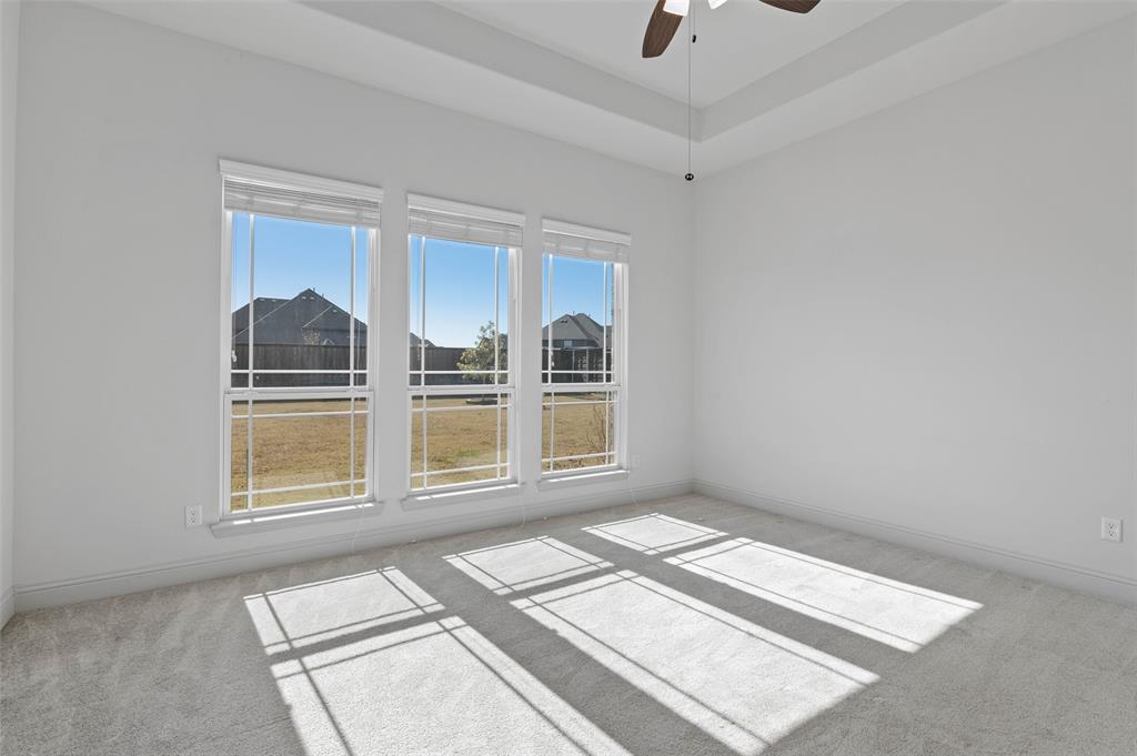 SELLER IS MOTIVATED! $2000 REALTOR BONUS FOR A TRANSACTION THAT CLOSES ON OR BEFORE OCTOBER, 31 2025. This elegant, north-facing Modern Farmhouse sits on a private 0.5-acre lot in the highly desirable Adkisson Ranch community. With 3,866 sq ft all on one level, this sprawling 4-bedroom, 3.5-bath home offers luxurious features, timeless finishes, and an ideal layout for both everyday living and entertaining. The natural stone, brick, and cedar exterior welcomes you into a bright, open floor plan flooded with natural light. The spacious living room features a soaring vaulted ceiling with built in surround sound that also broadcasts to the patio, gas log fireplace, and custom built-in bookcases. A private study with a coffered ceiling and a separate media room add flexibility for work and play. The gourmet kitchen is a chef’s dream—complete with 10' custom cabinetry with glass fronts and lighting, a huge island, a gas cook top, double convection ovens, and a walk-in pantry. Interior finishes include Luxury Vinyl Plank, tile, and carpet flooring, stunning accent walls, and extensive built-in cabinetry and storage. Retreat to the luxurious primary suite, which feels like a personal spa with a large soaking tub, large walk-in shower, dual vanities, and a massive closet. Three additional spacious bedrooms provide ample room for family and guests. Enjoy indoor-outdoor living with double sliding patio doors that lead to a beautifully landscaped backyard oasis. Relax in the large hot tub or entertain on the extended patio. Exterior features include an 8’ board-on-board privacy fence with rolling gate, full-yard sprinkler system, 10x10 storage shed, and drought-tolerant landscaping. Additional highlights: huge 3-car garage with epoxy-coated floor, extended concrete driveway, central vacuum system, energy-efficient HVAC, and whole-house gutters. This one-of-a-kind home blends custom design with modern comfort—don’t miss the opportunity to make it yours!
