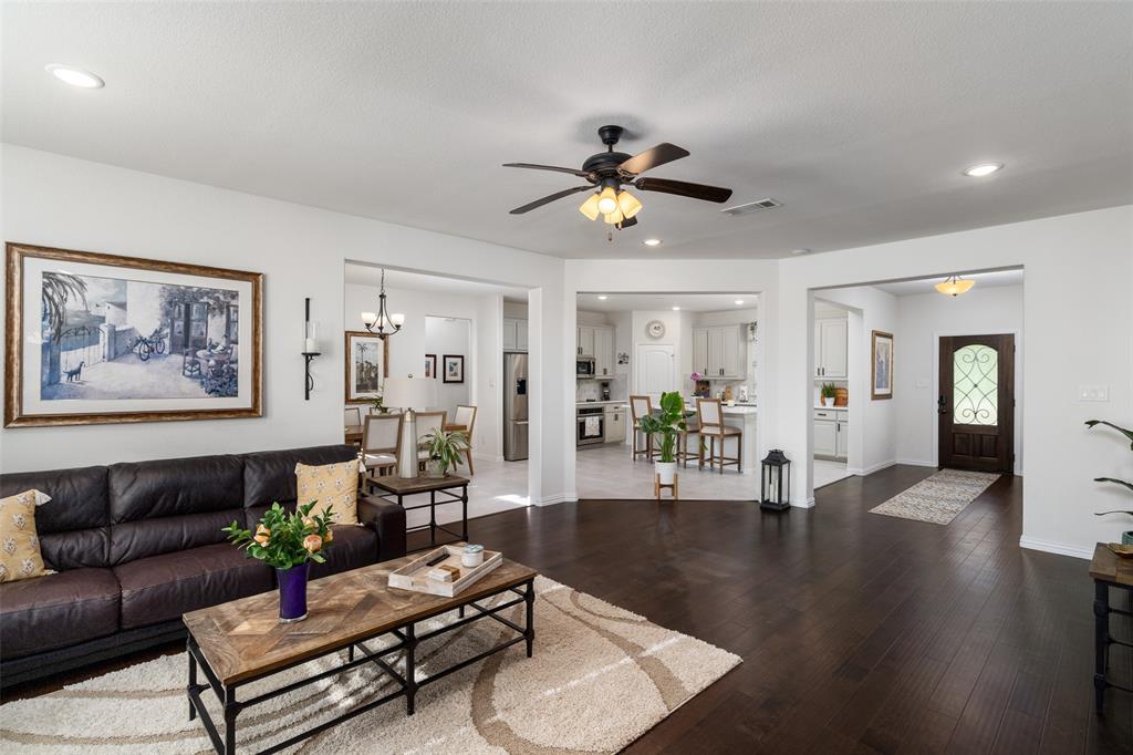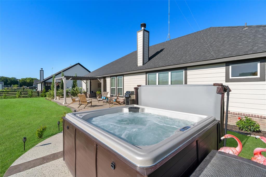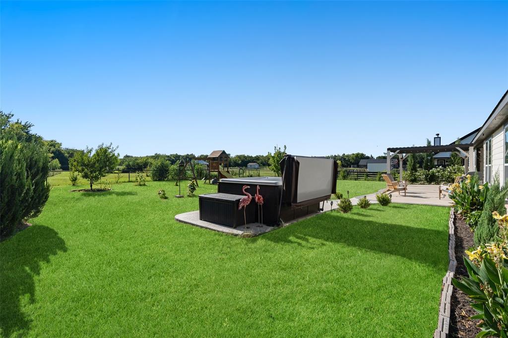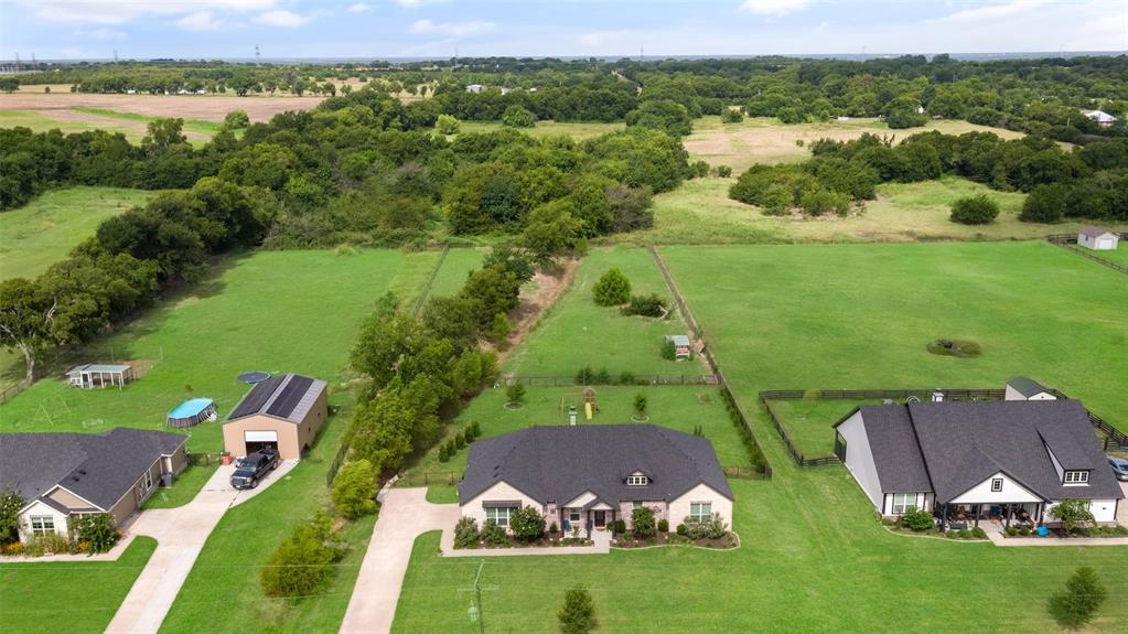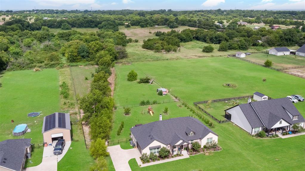 Built in 2021, this modern farmhouse sits on 1.4 shaded acres in Collin County. The home features an open floor plan with quartz countertops, a large kitchen island, walk-in pantry, and front-facing sink with natural light. Ceiling fans in every room, spray foam insulation, and attic decking provide comfort and efficiency. An active foundation warranty is included.