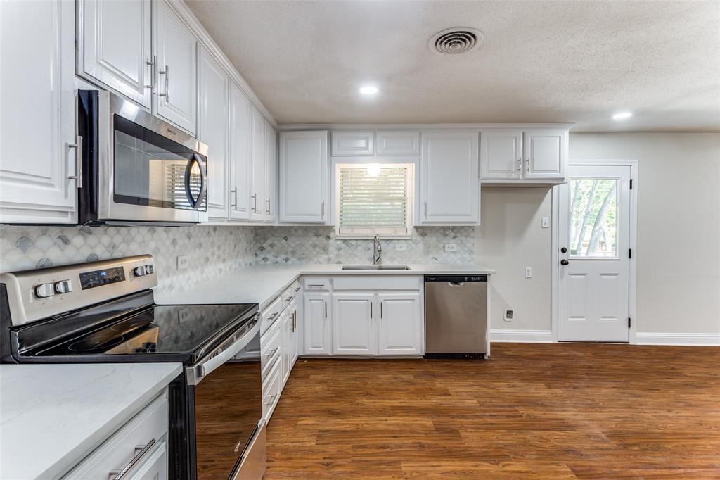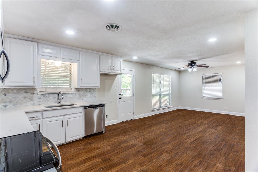 Welcome to this beautifully maintained one-story home nestled in the Wedgwood subdivision of Fort Worth. With 3 spacious bedrooms and 2 full bathrooms, this home offers comfort, style, and functionality. Step inside to find luxury vinyl plank flooring throughout the main living areas, with cozy carpet in the bedrooms. A large living room welcomes you in, flowing seamlessly into a versatile study behind elegant French doors—perfect for a home office or flex space. The kitchen boasts sleek quartz countertops, a beautiful marble backsplash, and a seamless flow into the dining area—ideal for everyday living and entertaining. The primary suite offers double closets and a private ensuite bath, while two secondary bedrooms share a well-appointed full bathroom. Enjoy the outdoors in the expansive backyard featuring an open patio and oversized yard—perfect for gatherings, gardening, or play. Don’t miss the opportunity to own this inviting home in a prime Fort Worth location—schedule your showing today!