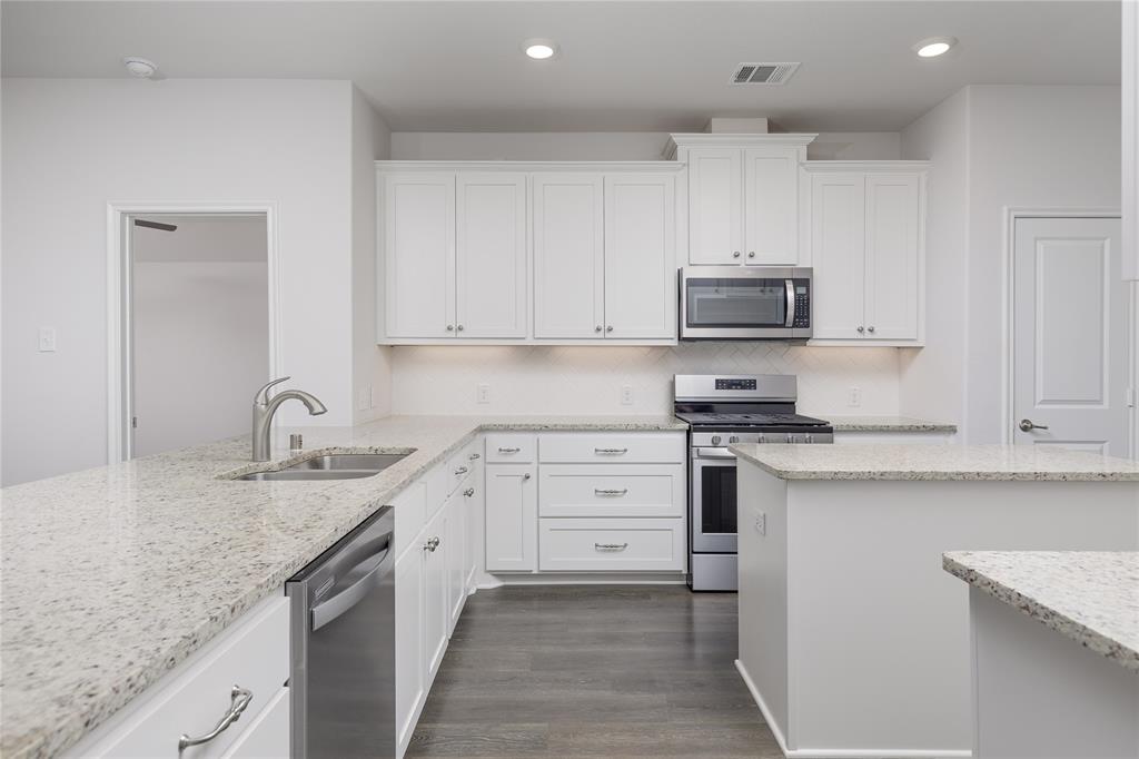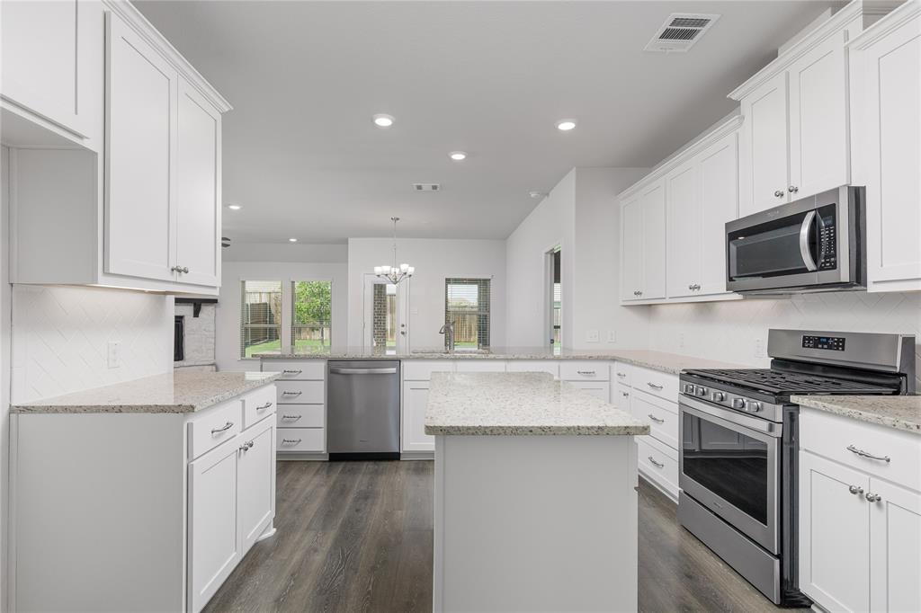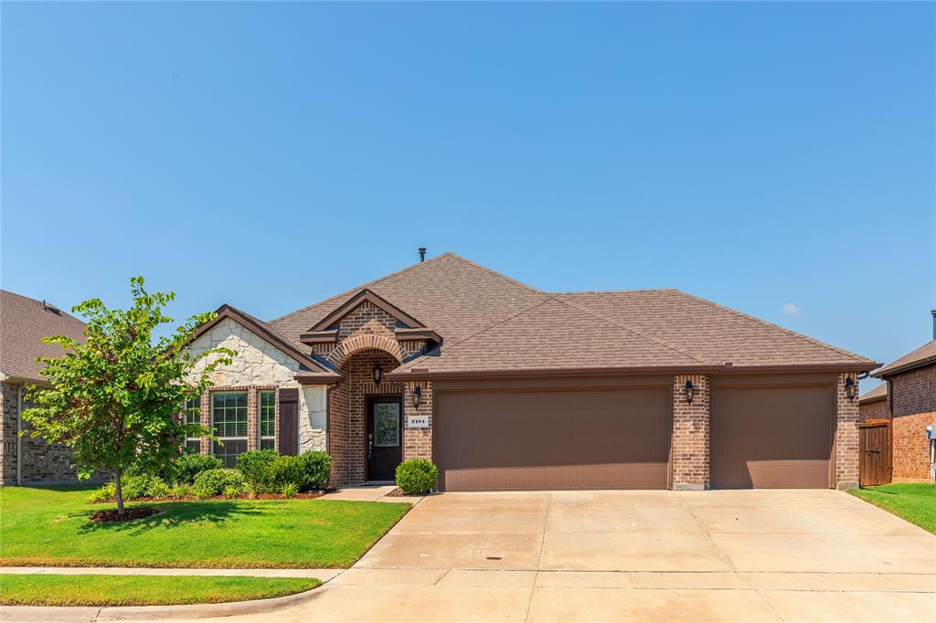 Don't miss this one! Assumable VA Loan! Well Maintained Brick and Stone single story home. This home offers 3 bedrooms and 2 baths plus a 3-car garage. The kitchen features lots of counter space and cabinets with a pantry for additional storage. Other features are the gas range, and the microwave vent a hood that vents out to the roof. The kitchen is open to the dining and living rooms. The living room overlooks the back yard and the extended covered patio. The master suite looks onto the backyard and the ensuite features dual sinks and garden tub and separate shower with a large walk-in closet. The study-office is in the front giving a quiet and private room. The secondary bedrooms are off the front entry and have a bath between them. The utility has washer and dryer that stays with cupboards over them. The 3-car garage has wonderful epoxy floors and lots of outlets for work benches, etc. This home also has sprinkler system and tankless hot water heaters. This home is close to elementary and Junior High and amenity center.