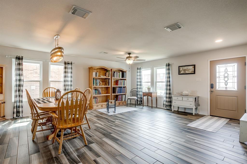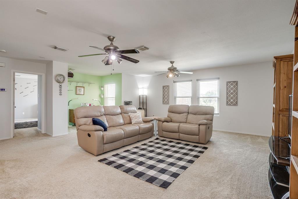 Welcome to 956 Mosaic Drive, a spacious and well-maintained home in a prime Fort Worth location with easy access to major highways and top-rated schools. The smart layout features the primary suite privately tucked away downstairs, while all secondary bedrooms and a large flex space are upstairs, perfect for a game room, home office, or movie night hangout. Downstairs, wood-look ceramic tile flows throughout all the main living areas, combining durability with style, and the open-concept kitchen offers ample cabinetry and great natural light. Recent upgrades include a full HVAC system replacement in 2019, energy-efficient Low-E double-pane windows installed in 2021, and fresh interior paint throughout. Out back, enjoy a low-maintenance yard with no direct rear neighbors, two charming peach trees, and a patio that’s just waiting for summer evenings and backyard gatherings. With excellent curb appeal, thoughtful updates, and a layout that truly works, this home is move-in ready and a sweet find in Northwest Fort Worth.