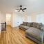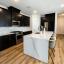 The exterior pairs clean white brick with sleek gray siding and black accents for a crisp, modern finish. Beyond the front door, thoughtful design takes center stage, starting with a striking black accent wall at the entry, warm wood flooring, and a chef inspired kitchen featuring waterfall edge marble quartz countertops, a full height backsplash, dark cabinetry, stainless steel appliances, and an oversized island ideal for both cooking and conversation.