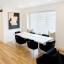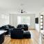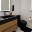 The open layout connects the kitchen, dining, and living spaces seamlessly grounded by warm wood tones, modern lighting, and natural light that moves throughout the home. Just off the main level, the powder room makes a bold statement: a floating wood vanity with soft-close drawers, striking matte black fixtures, a sleek encompassed sink, and a full LED backlit mirror, all anchored by a designer black toilet and a generous window that adds an unexpected touch of natural light and a curated guest suite experience.