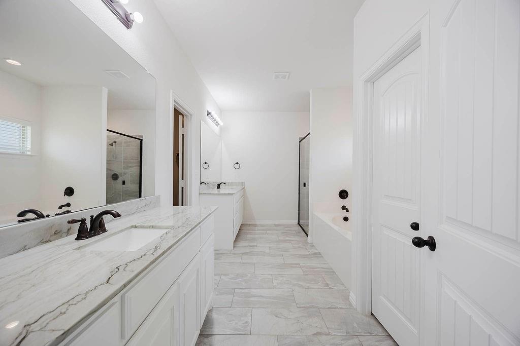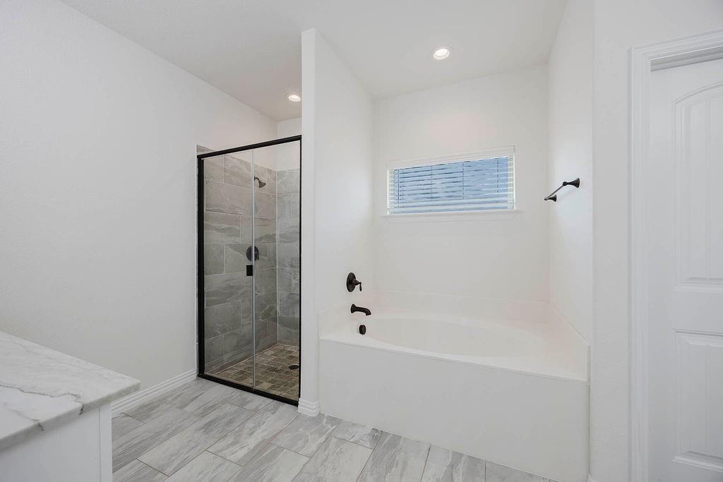 The spacious primary suite is a private haven with its own entrance, perfect for added privacy or multi-generational living. The ensuite bath offers a spa-like experience with a soaking tub, dual vanities, and separate shower.