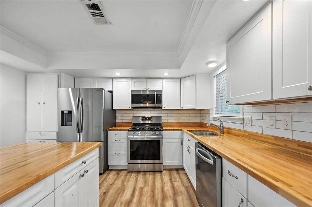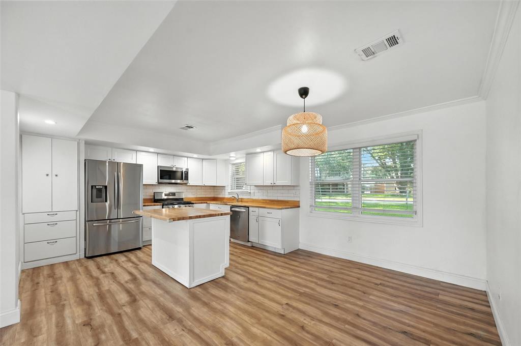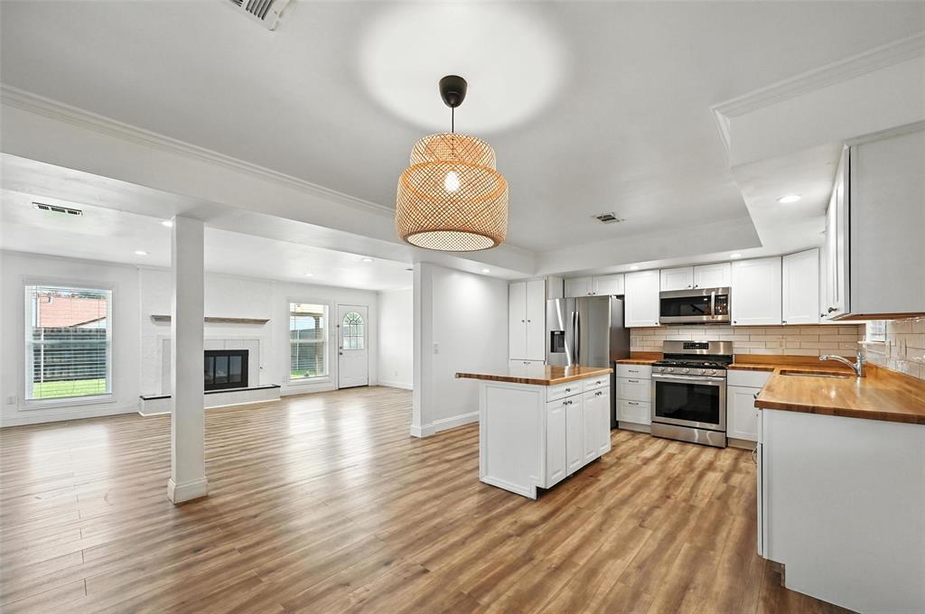 Welcome to this spacious and tastefully updated two-story home, offering 4 bedrooms, 3 baths, and an open layout designed for modern living. The heart of the home is the beautifully remodeled kitchen, featuring butcher block countertops, stainless steel appliances, a large island, and a seamless connection to the light-filled living room with its cozy fireplace—perfect for both everyday comfort and entertaining guests.