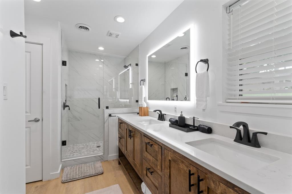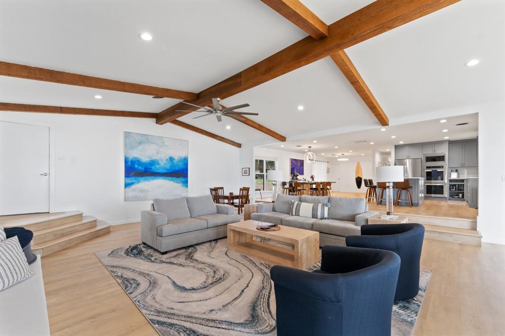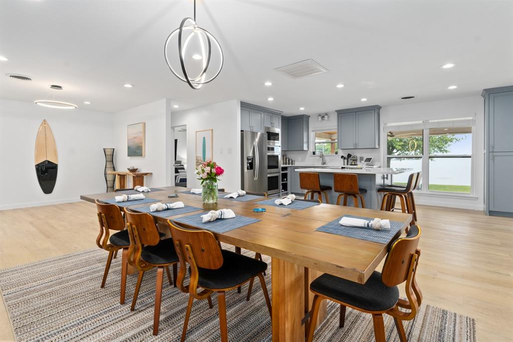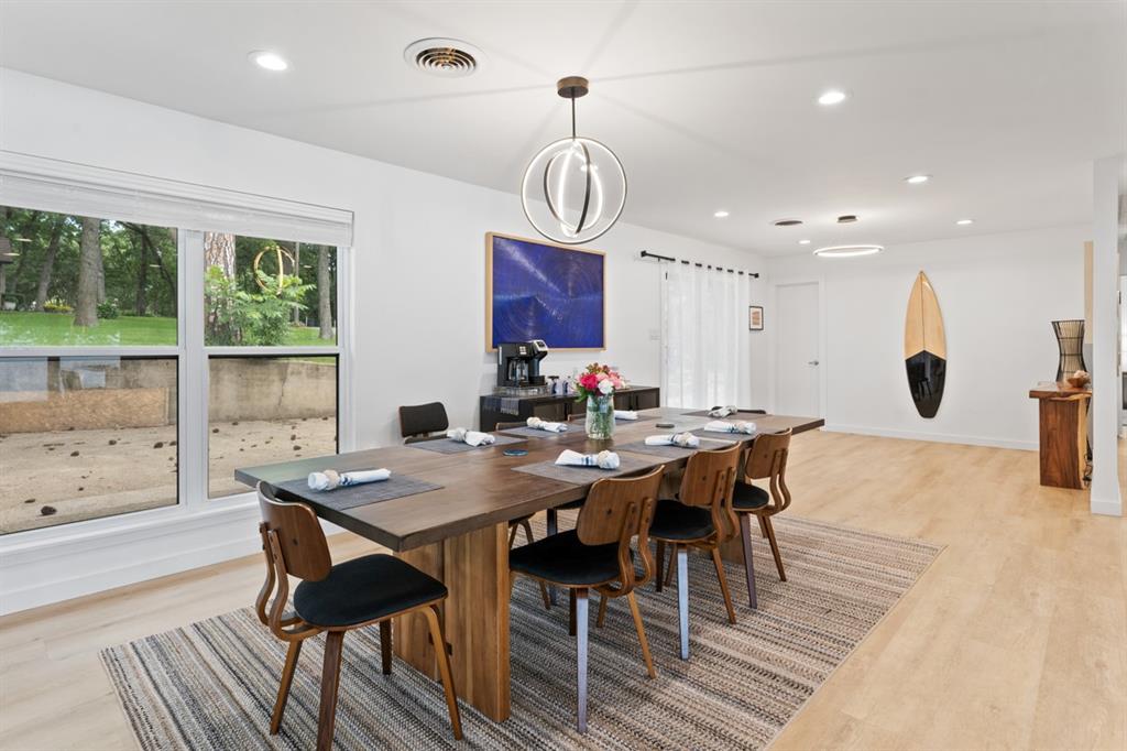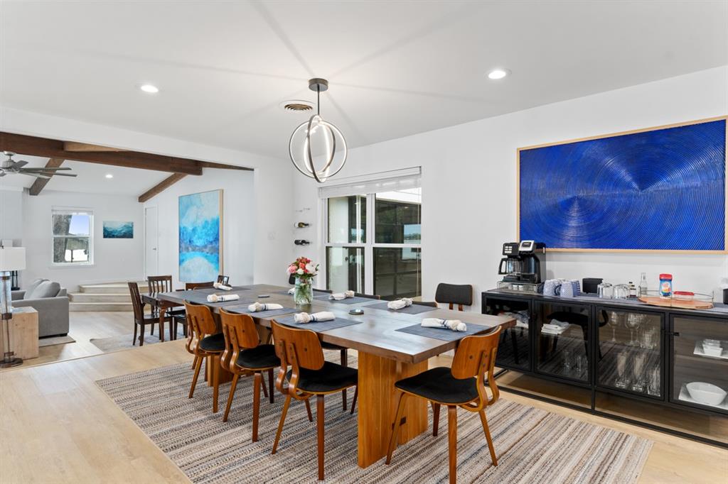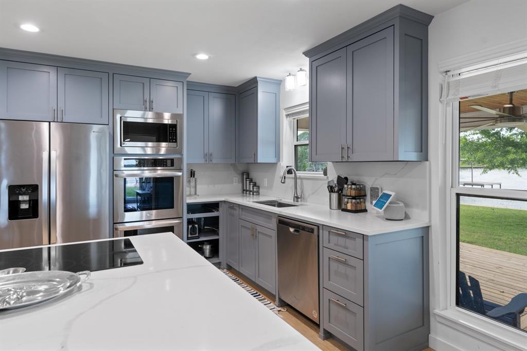 Exceptional water depth sets this home apart! Over 11' depth at the dock of this peninsula point with over 200ft. of private shoreline. Stepping into this beautifully updated home and you are met by miles of pristine open water views. Surrounded by the freshest finishes throughout this stunning open design. Wood beam ceilings span the vaulted living space, wbfp centering the room where double sliding doors bookcase to all of the outdoor fun to be had. Kitchen boasts stainless appliances including double oven for ease of entertaining and hosting the largest family gatherings. Master suite and spacious guest suite main level both appreciate windows flooded with natural light and lake views! Two bunk rooms and a third bath upstairs over the game room; second living space on a second heating and cooling zone. HVAC, water heater, appliances, cabinetry, fixtures, windows and standing seam metal roof all 2019 or newer. VRBO Allowed. Fire pit and mature trees at water's edge.