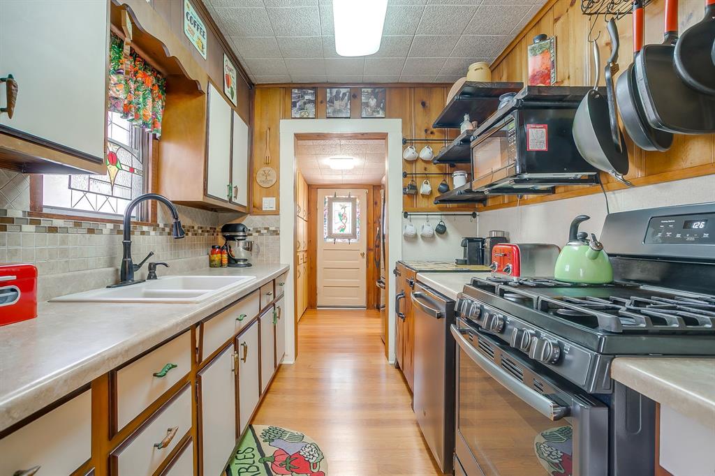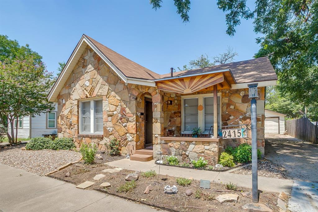 NOW PRICED BELOW MARKET VALUE! Welcome to a little piece of history in one of the most up and coming parts of the city of Fort Worth! This charming 2 bedroom, 1 bath home has so many original and unique features, including stained glass windows repurposed from a local church and stones from the previous owner's personal collection, intricately placed within the stone facade. Other features include low maintenance landscaping with drip system, beautiful outdoor living space, backyard dining area, 2 detached storage buildings, plumbed, and wired for electrical and could be converted to an additional dwelling unit, and a 2 car garage. There is also a large storm shelter with electricity in case you need a place to ride out our unpredictable weather! All just steps away from the Trinity River Trails and just minutes to Downtown! This home has been lovingly maintained by the same owner for the last 49 years. Some furnishings are also for sale.