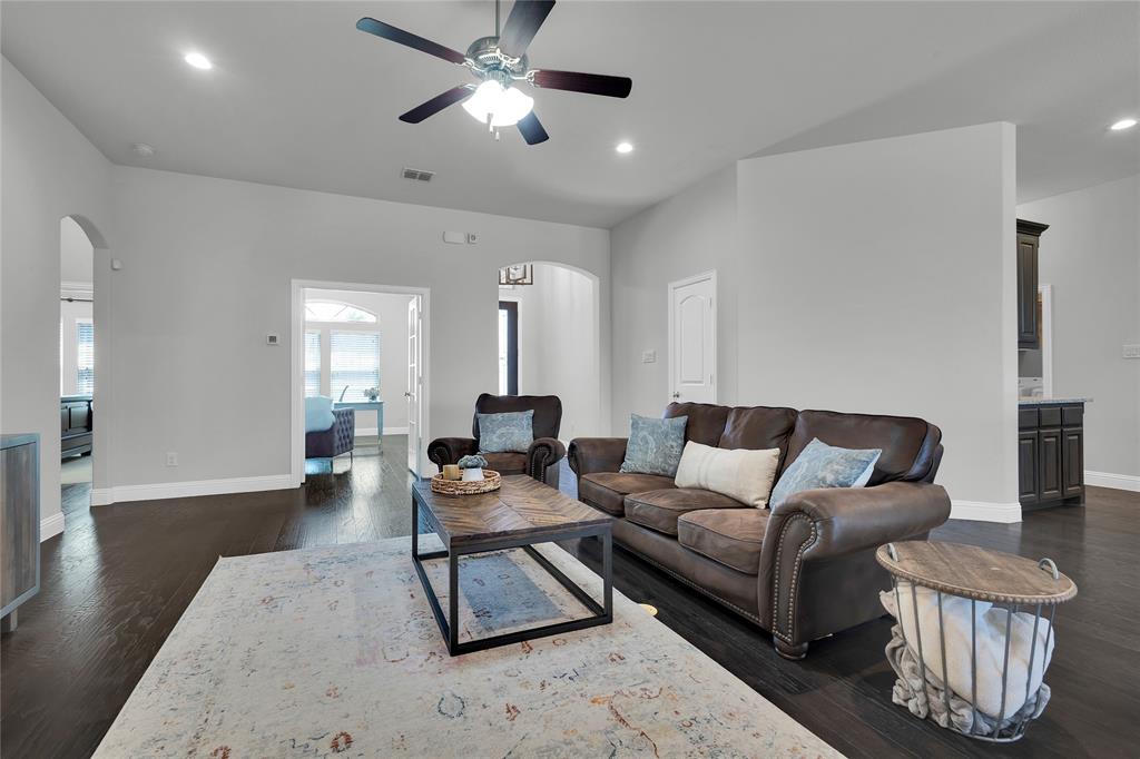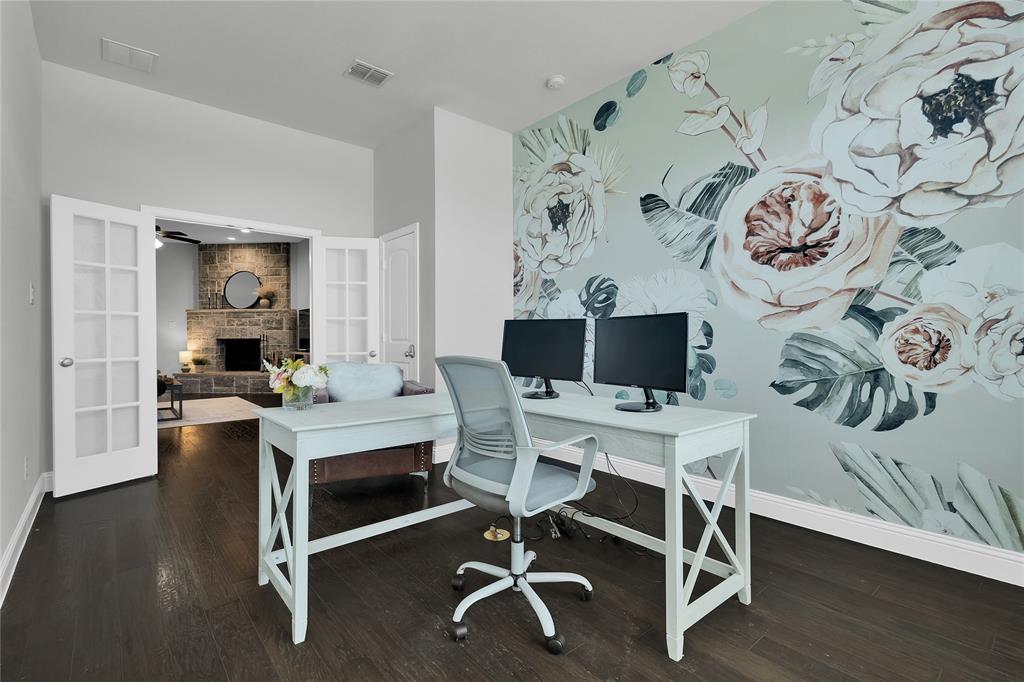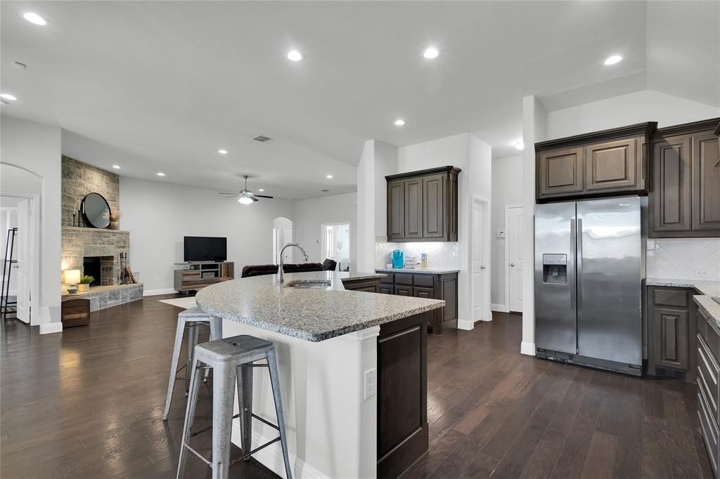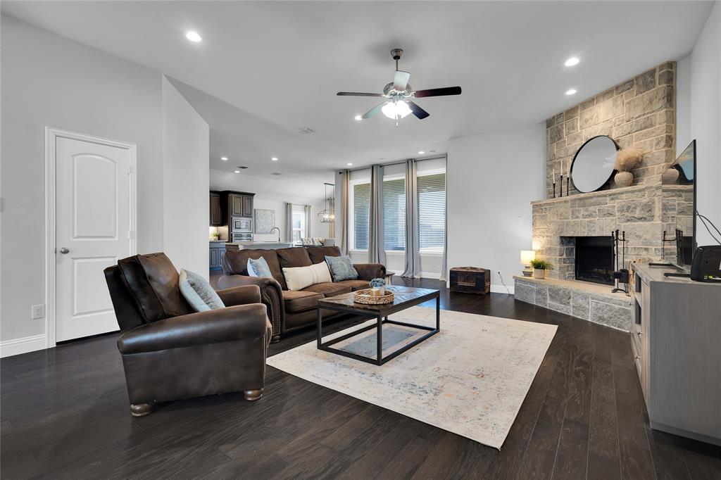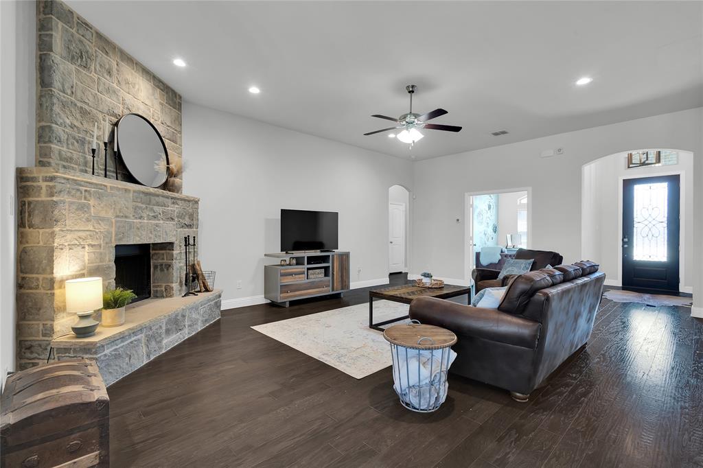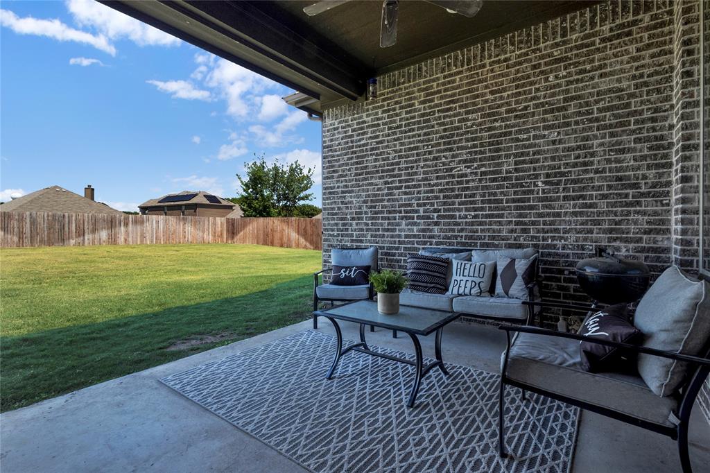 ***Charming All-Brick Home with Stylish Upgrades in Justin, TX*** Welcome to this beautifully maintained all-brick home featuring a blend of comfort, functionality, and upgraded finishes. The inviting open floor plan showcases a stunning wood-burning fireplace with a floor-to-ceiling stone surround—perfect for cozy evenings. The gourmet kitchen is a standout, complete with an upgraded cabinet package that offers both style and ample storage. The flexible 4-bedroom layout includes a room currently used as a home office—ideal for remote work or study. Step outside to a spacious, north-facing backyard with a covered patio—perfect for enjoying shade on warm Texas afternoons. Thoughtfully designed landscaping with elegant stone and brick edging enhances the curb appeal and outdoor living experience. Located in the heart of Justin, a quintessential Texas town known for its friendly community spirit and rapid growth. You'll love the nearby amenities and easy access to major commuter routes.