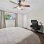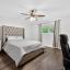 Durable wood-look tile flooring flows throughout the space, creating a cohesive, clean, and modern aesthetic. The spacious primary suite includes an en-suite bath, and both bedrooms offer generous walk-in closets.