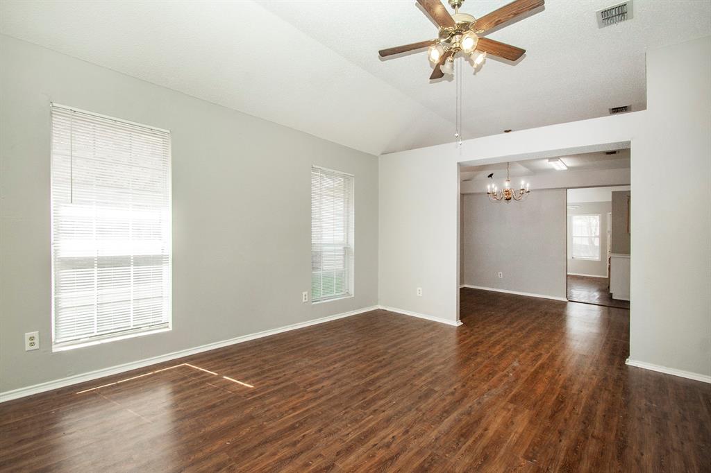 Very charming 3-bedroom, 2-bath, 2 car garage one story home conveniently located with quick access to I-30 and Goerge Bush tollway. Low lawn maintenance with a patio style fence backyard with lots of privacy. Desirable neighborhood just minutes from Lake Ray Hubbard. This home offers comfort and great location with easy access to downtown Rowlett and Rockwall, top-rated schools, shopping, dining and more. The family room offer a lovely gas fireplace and high vaulted ceilings. All open to the kitchen and dining area. 2 bedrooms in the front of the home with the primary bedroom secluded near the rear with a large bathroom, separate sinks, shower and toilet area. Large closet with extra storage space throughout the home. Don't miss this opportunity for a great buy. All offers will be reviewed.