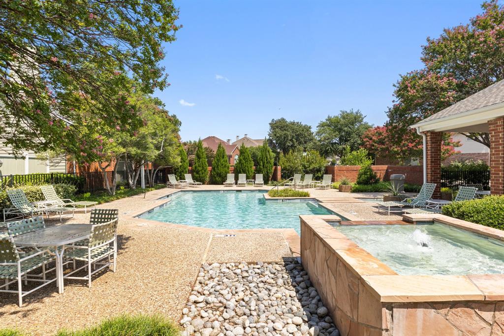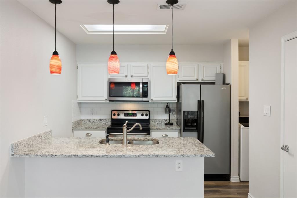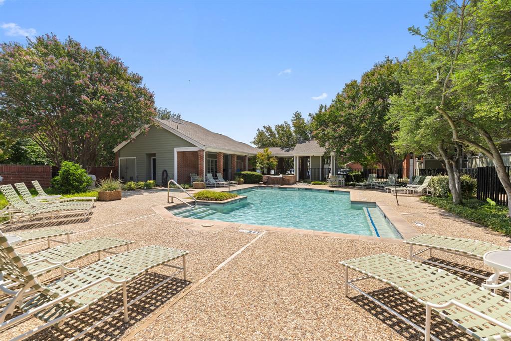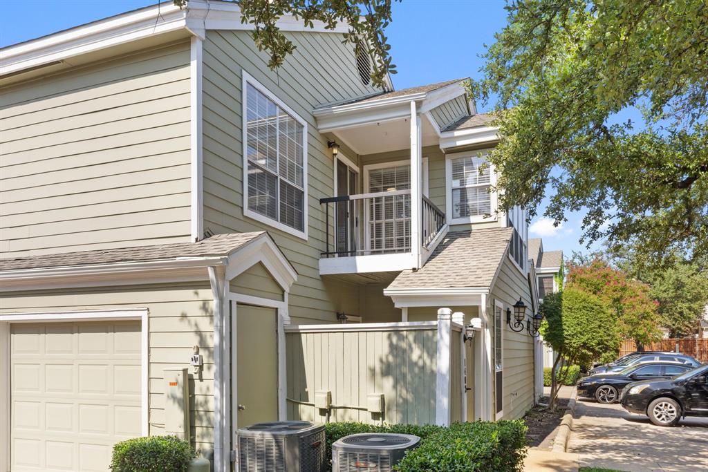Experience easy, stylish living in this updated 2-bedroom, 2-bath corner unit condo nestled in the heart of North Dallas. Tucked into a quiet, tree-lined setting, this spacious end unit offers added privacy, abundant natural light, and no neighbors on one side. Inside, you'll find a thoughtfully updated interior featuring granite countertops in both the kitchen and bathrooms, crisp white cabinetry, and stainless-steel appliances. The open-concept kitchen is accented by custom pendant lighting, a breakfast bar, and a skylight that fills the space with natural light. Smart home features include a Nest thermostat and Nest doorbell webcam for added comfort and security. Both bedrooms are generously sized, and the bathrooms have been refreshed with modern finishes, including a sleek glass shower door in the secondary bath. Additional updates include a new front entry light fixture and a brand-new air conditioning unit for efficient, year-round comfort. Enjoy your morning coffee on the private balcony or relax by the sparkling community pool and spa. The beautifully maintained grounds also include a clubhouse—ideal for entertaining or hosting guests. With assigned covered parking, guest spaces, and easy access to restaurants, nightlife, parks, and major highways, this move-in ready condo truly has it all.