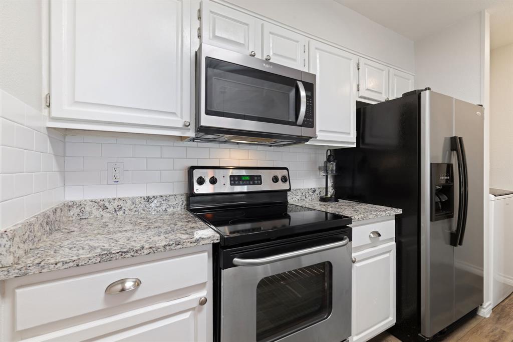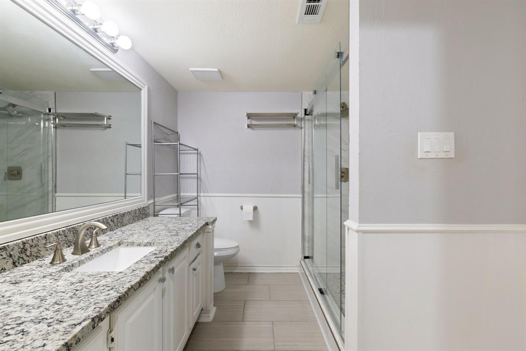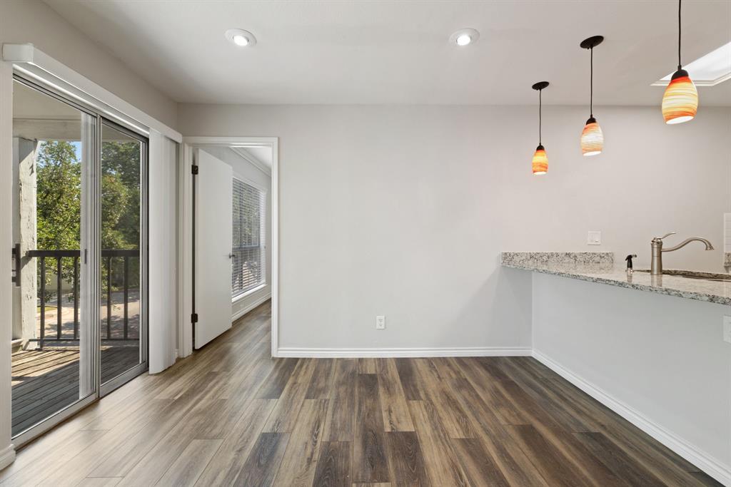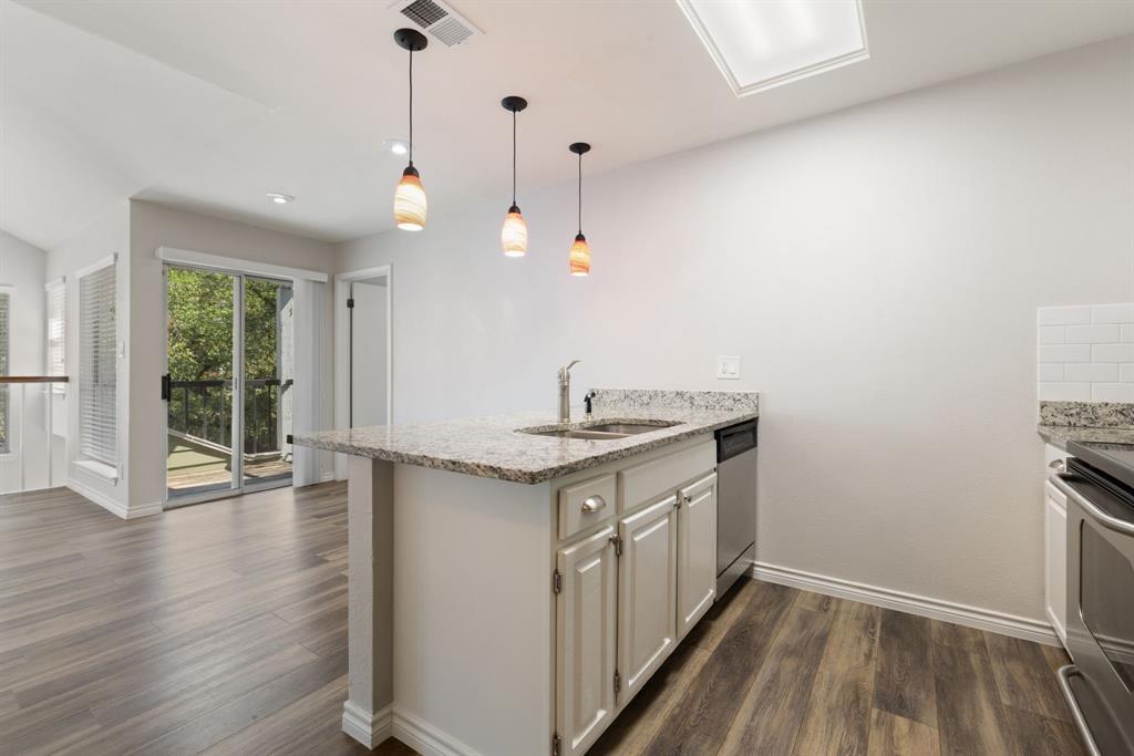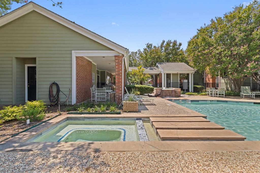 Experience easy, stylish living in this updated 2-bedroom, 2-bath corner unit condo nestled in the heart of North Dallas. Tucked into a quiet, tree-lined setting, this spacious end unit offers added privacy, abundant natural light, and no neighbors on one side. Inside, you'll find a thoughtfully updated interior featuring granite countertops in both the kitchen and bathrooms, crisp white cabinetry, and stainless-steel appliances. The open-concept kitchen is accented by custom pendant lighting, a breakfast bar, and a skylight that fills the space with natural light. Smart home features include a Nest thermostat and Nest doorbell webcam for added comfort and security. Both bedrooms are generously sized, and the bathrooms have been refreshed with modern finishes, including a sleek glass shower door in the secondary bath. Additional updates include a new front entry light fixture and a brand-new air conditioning unit for efficient, year-round comfort. Enjoy your morning coffee on the private balcony or relax by the sparkling community pool and spa. The beautifully maintained grounds also include a clubhouse—ideal for entertaining or hosting guests. With assigned covered parking, guest spaces, and easy access to restaurants, nightlife, parks, and major highways, this move-in ready condo truly has it all.