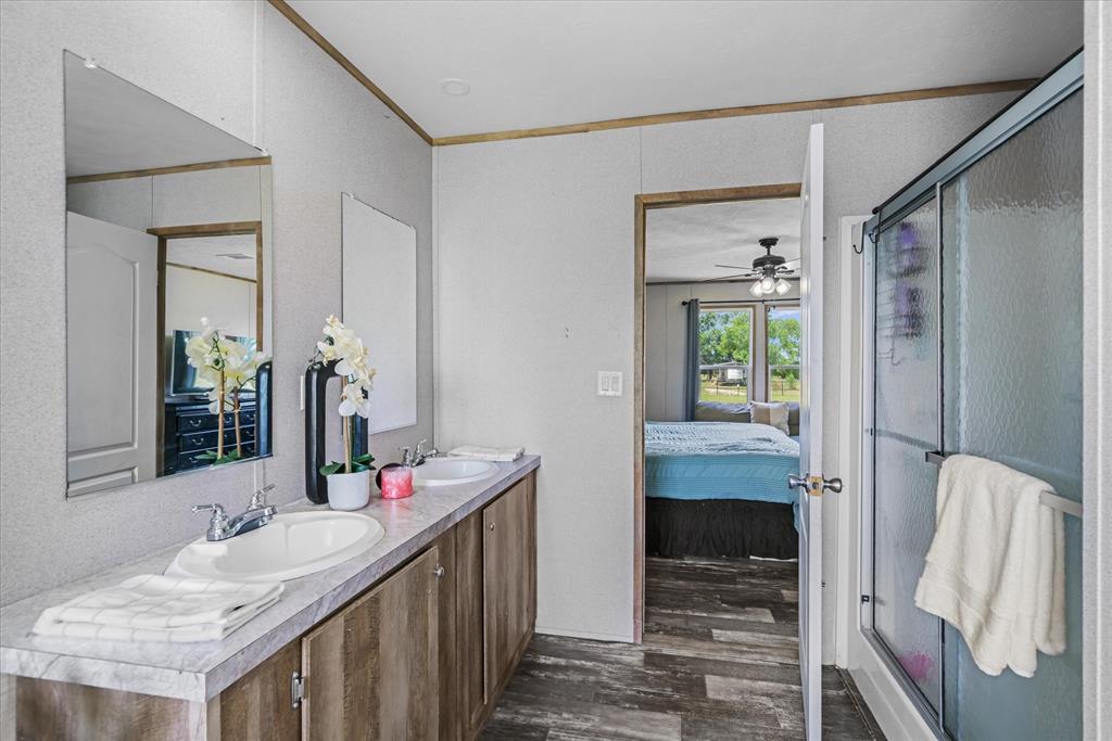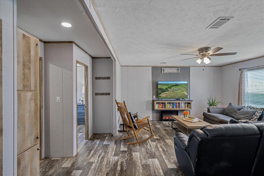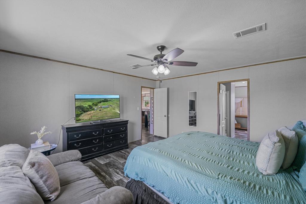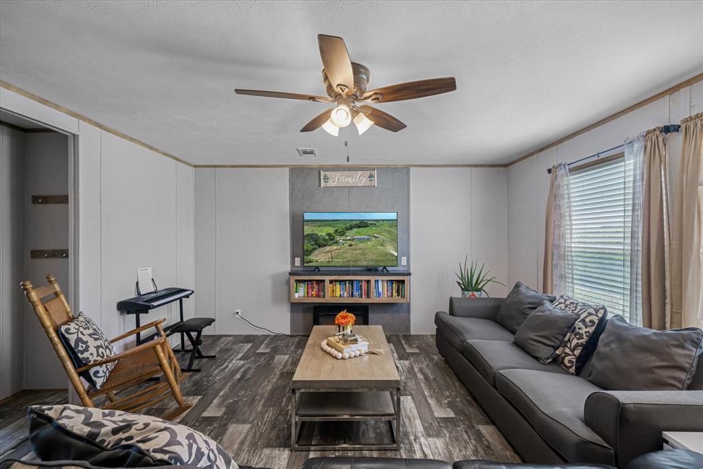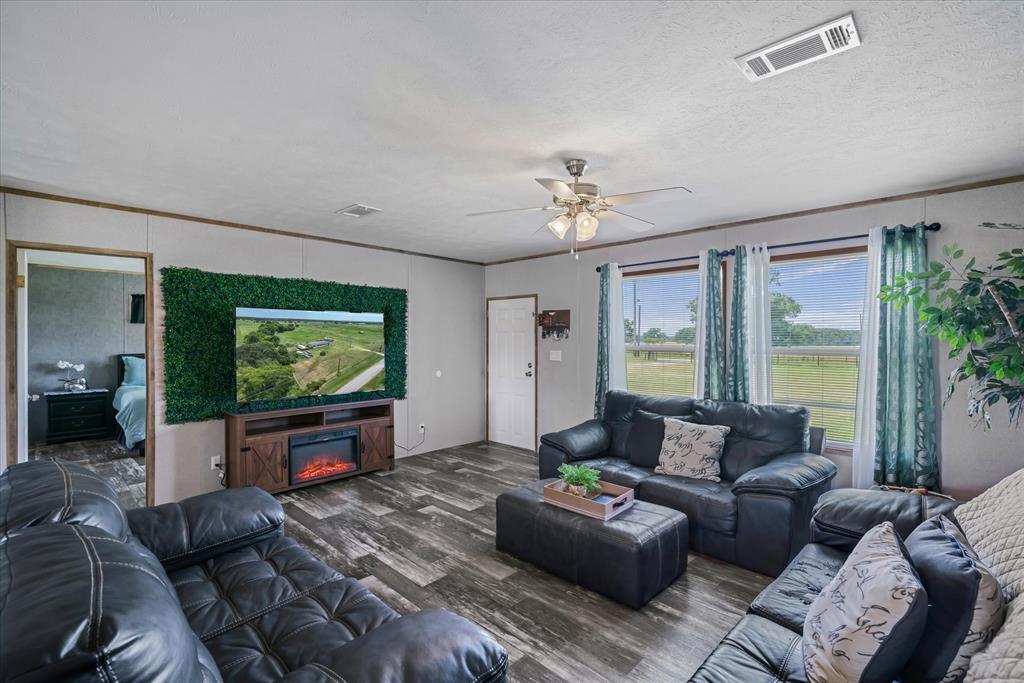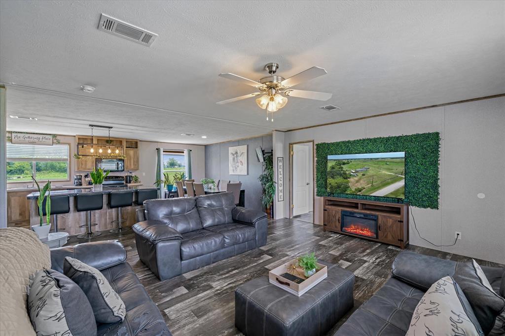 Country charm meets modern comfort, in the heart of Van Zandt County! This 4-bedroom 2-bathroom 2020 mobile home nestled on 2 acres is awaiting your arrival. West facing home to capture the sunsets. Inviting entry to living room will greet your guests. Generous living spaces, and natural light. Kitchen with center island provides an abundance of cabinetry and countertop food preparation space. Walk-in pantry, display shelving niches, and a dining table area to accommodate larger gatherings. Spacious primary retreat with full bath en suite, soaking tub, separate shower, dual sink vanity, and large walk-in closet. 3 additional nicely sized bedrooms share a full bathroom. Family or bonus room provides an additional living space. Home is equipped with AC. New aerobic septic system. Room to roam in a rural setting surrounded by nature, yet easy access to I-20 for commute to Dallas or Tyler. RV parking with 30-AMP & 50-AMP power. Parking galore! Ample space for livestock, gardens, recreation, with room to work + play. A blank canvas to intersect with your lifestyle. Close proximity to schools, shops, and the local vibe. This property is a rare opportunity to own a slice of Texas with room to grow, roam, work or relax. Primary residence or weekend getaway, this is it!