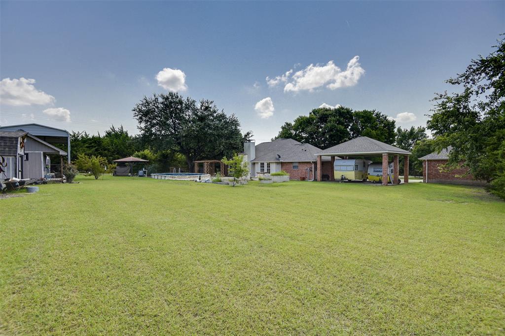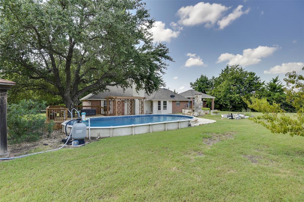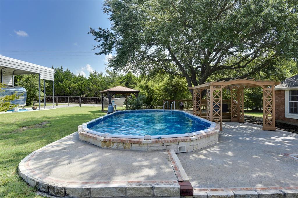 **MULTIPLE OFFERS RECEIVED! BEST OFFERS DUE BY 5PM AUG 12TH!** Looking for a little elbow room, privacy, and a whole lot of charm? This one-owner brick beauty sits on 3.25 acres behind a private gate and offers the perfect mix of comfort, functionality, and laid-back country living; all with no city taxes! With 3 bedrooms, 2 bathrooms, and 1705 square feet of well-cared-for living space, this home is ready for you to move right in and make it your own. Cozy up by the indoor fireplace or enjoy evenings outside by the second fireplace on the patio, ideal for entertaining or relaxing under the stars. Cool off in the summer with the custom-installed above-ground pool, designed to feel like it’s built right into the yard. There's also a 2-car detached garage with a storm shelter that is connected to the house by a covered carport, plus an RV parking area with full hookups; bring your toys or invite guests to stay awhile! Love hobbies or need storage? You will appreciate the workshop with electricity, storage shed, and paved driveway. And nature lovers will enjoy creek access along one side of the property; great for exploring or just soaking in the peace and quiet.