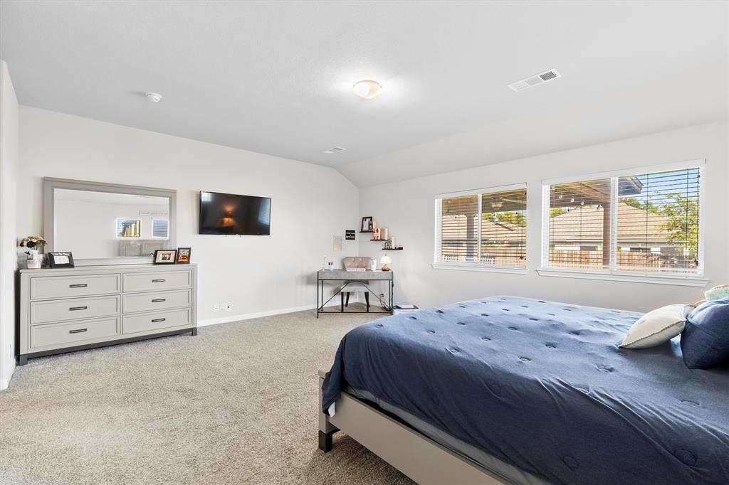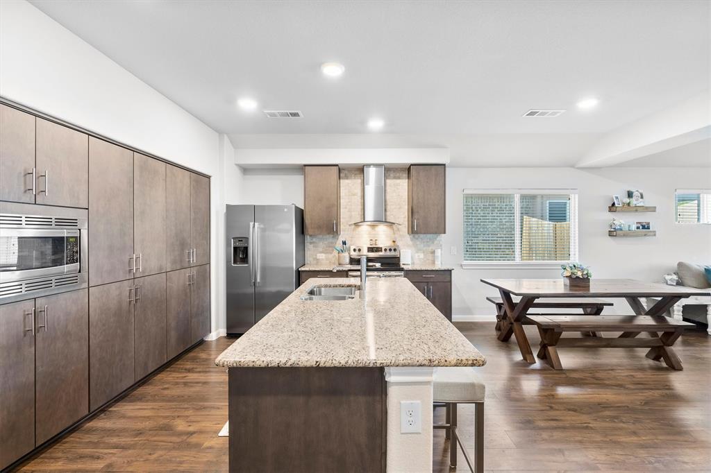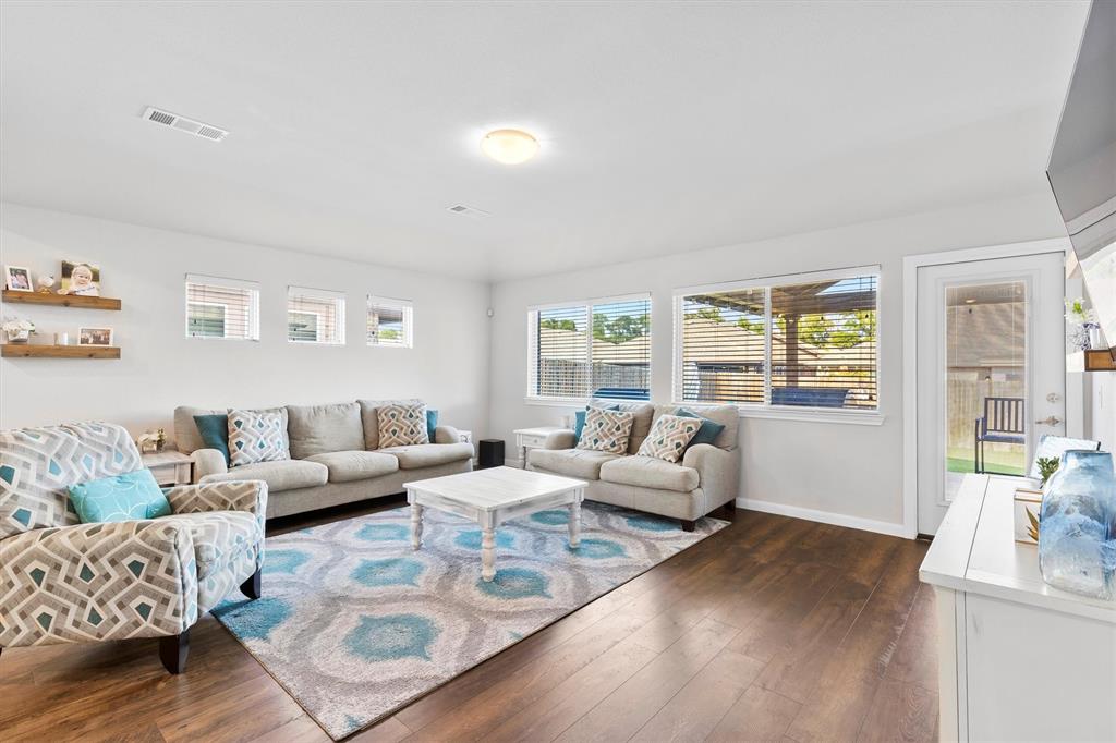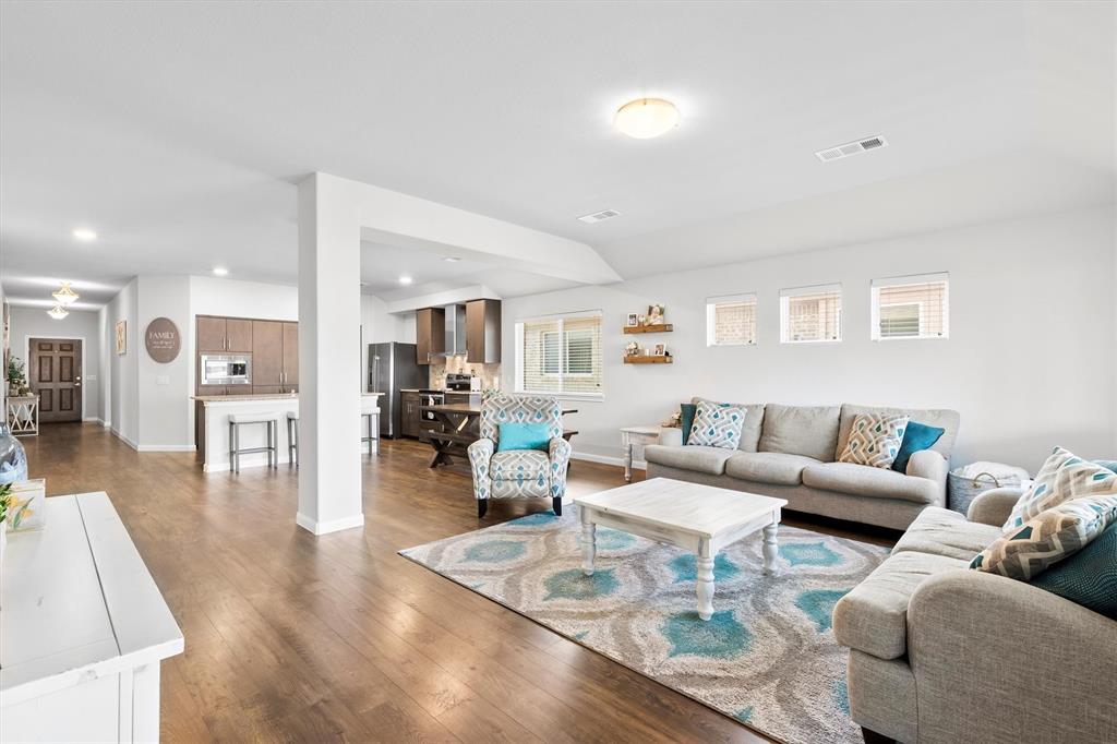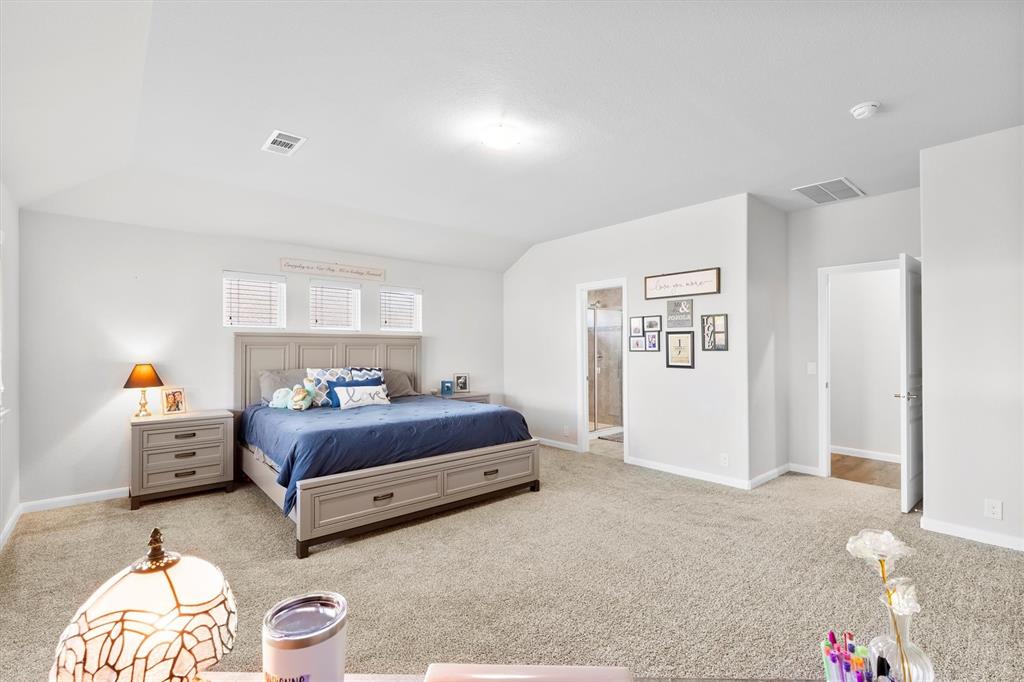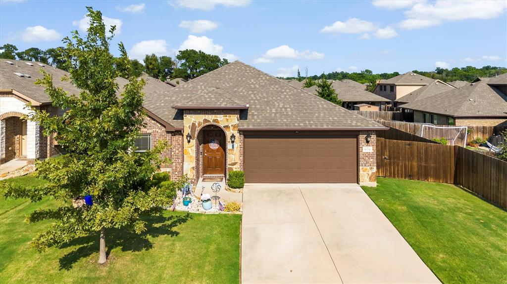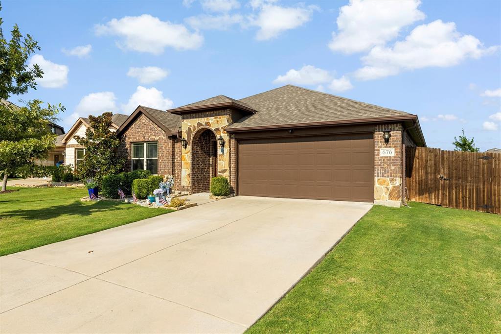 LARGE LOT WITH CUSTOM COVERED PATIO! Must-See Home with Backyard Retreat on Cul-de-Sac Lot! Welcome to this beautifully maintained brick and stone home, ideally situated on a spacious 0.218-acre cul-de-sac lot in a thriving community within sought-after Community ISD—home of the Braves! Enjoy your own outdoor oasis with a EAST-facing extended covered patio, perfect for evening entertaining Outfitted with charming twinkle lights, a mounted outdoor TV, and a cozy fire pit area, it’s the ultimate game day or relaxation spot. The oversized driveway accommodates up to 8 cars—ideal for guests or multi-vehicle households. Step inside to an inviting open-concept floorplan featuring a gourmet kitchen with granite countertops, upgraded tile backsplash, modern cabinetry, commercial-grade vent hood, stainless steel appliances, and a spacious walk-in pantry. The kitchen island provides plenty of seating and seamlessly flows into the bright and airy living room, which easily fits large furniture and is filled with natural light.The expansive primary suite offers enough space for a private sitting area, along with a large walk-in closet, dual vanities,and a luxurious oversized walk-in shower. The three additional bedrooms are equally charming—one of which makes a perfect home office or guest room. Additional features include a full sprinkler system, separate fenced dog pen in backyard, a separate laundry room with drip dry pole, rain gutters, and thoughtful upgrades throughout. Enjoy access to top-tier neighborhood amenities including a 300-gallon resort-style pool, additional pools, fitness center, playgrounds, and more!