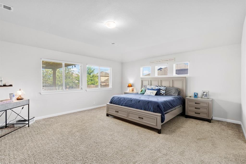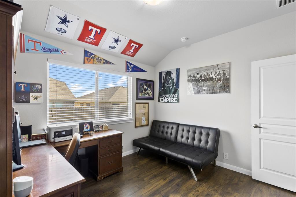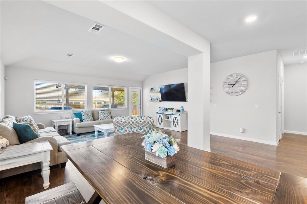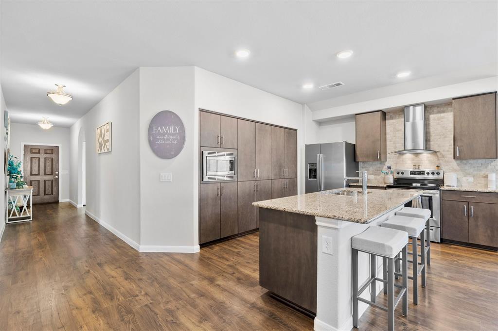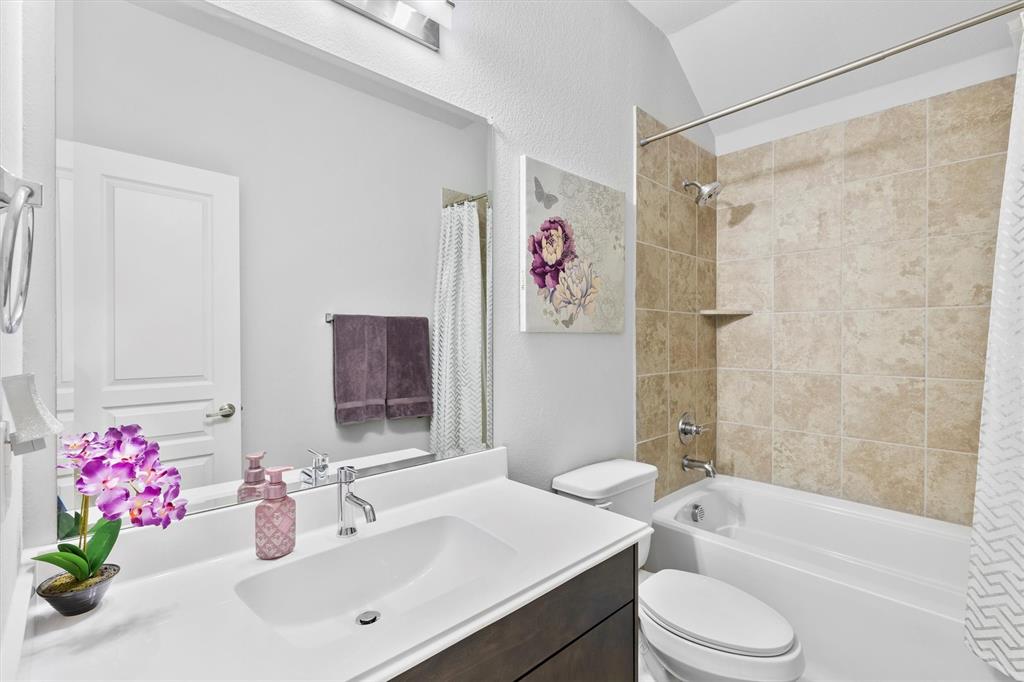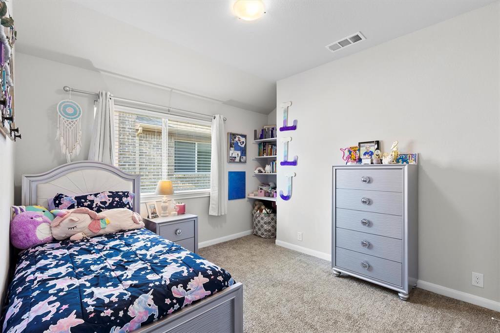 LARGE LOT WITH CUSTOM COVERED PATIO! Must-See Home with Backyard Retreat on Cul-de-Sac Lot! Welcome to this beautifully maintained brick and stone home, ideally situated on a spacious 0.218-acre cul-de-sac lot in a thriving community within sought-after Community ISD—home of the Braves! Enjoy your own outdoor oasis with a EAST-facing extended covered patio, perfect for evening entertaining Outfitted with charming twinkle lights, a mounted outdoor TV, and a cozy fire pit area, it’s the ultimate game day or relaxation spot. The oversized driveway accommodates up to 8 cars—ideal for guests or multi-vehicle households. Step inside to an inviting open-concept floorplan featuring a gourmet kitchen with granite countertops, upgraded tile backsplash, modern cabinetry, commercial-grade vent hood, stainless steel appliances, and a spacious walk-in pantry. The kitchen island provides plenty of seating and seamlessly flows into the bright and airy living room, which easily fits large furniture and is filled with natural light.The expansive primary suite offers enough space for a private sitting area, along with a large walk-in closet, dual vanities,and a luxurious oversized walk-in shower. The three additional bedrooms are equally charming—one of which makes a perfect home office or guest room. Additional features include a full sprinkler system, separate fenced dog pen in backyard, a separate laundry room with drip dry pole, rain gutters, and thoughtful upgrades throughout. Enjoy access to top-tier neighborhood amenities including a 300-gallon resort-style pool, additional pools, fitness center, playgrounds, and more!