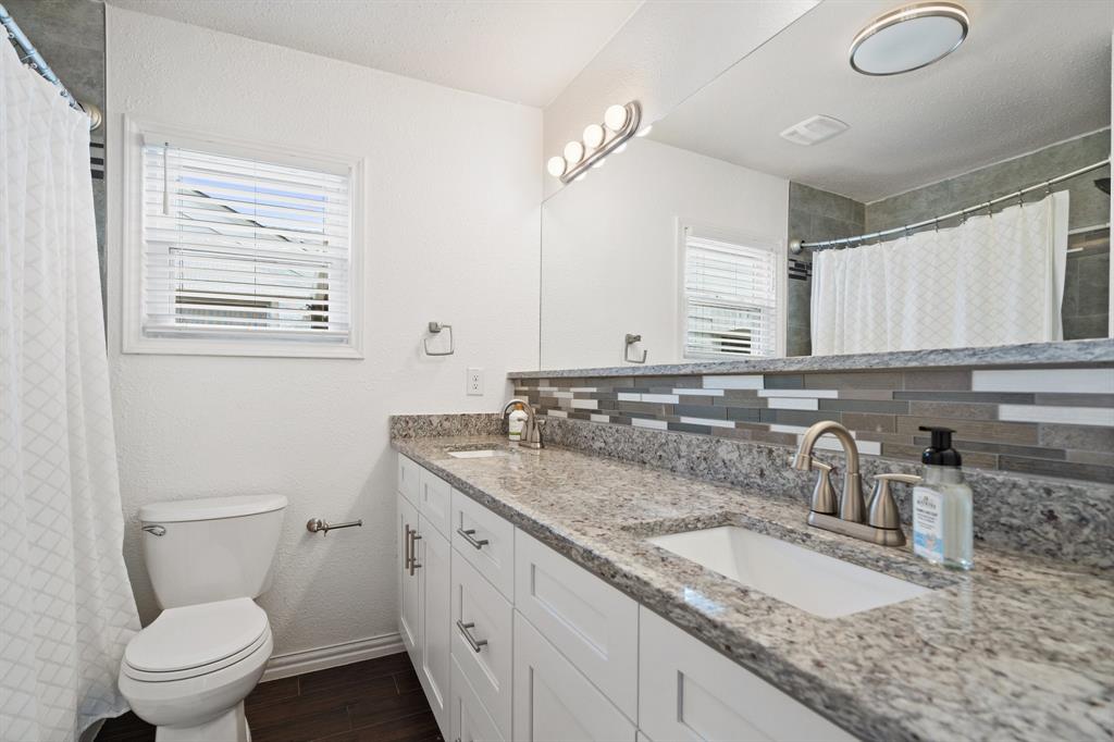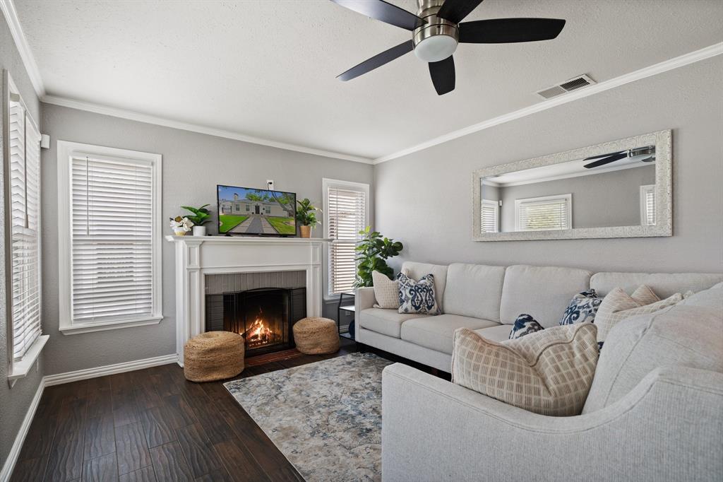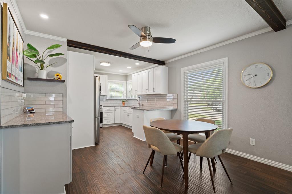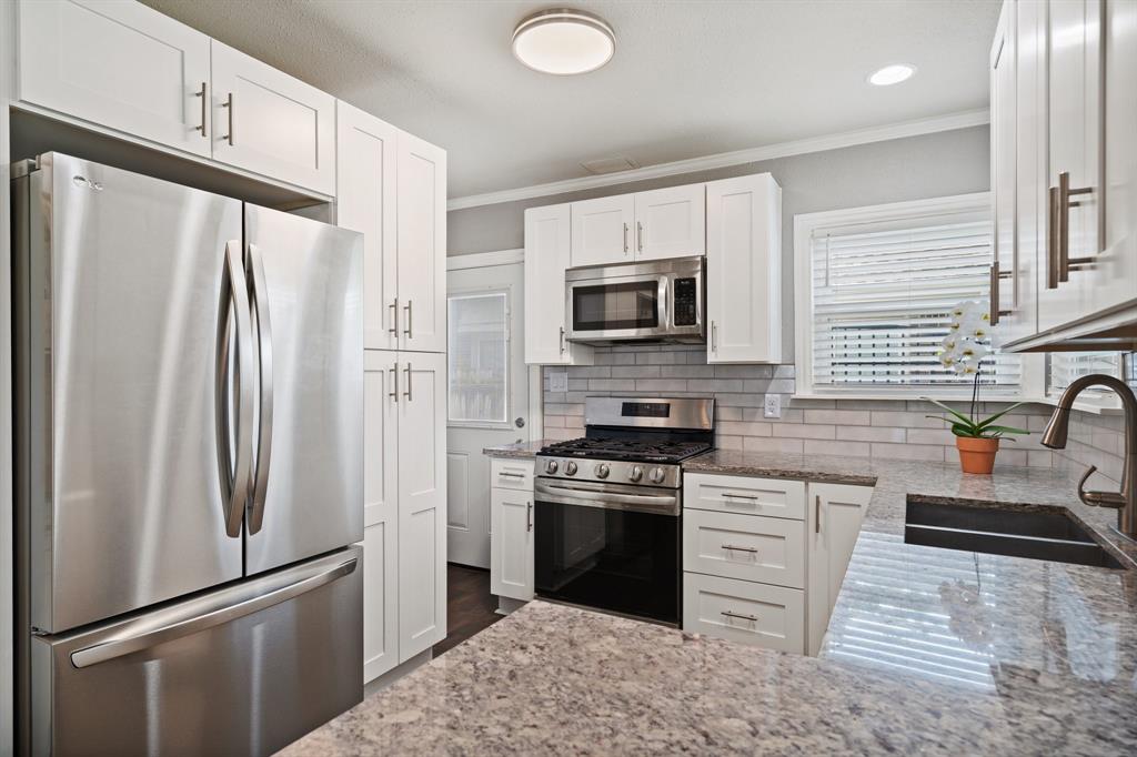 This beautifully renovated 1941 home seamlessly blends timeless charm with modern convenience. The home was taken down to the studs, exterior brick, and roof in 2021, and now features a new roof as of 2023, offering peace of mind and lasting appeal. The open-concept kitchen is equipped with soft-close cabinetry and new appliances that are a chef’s dream. The kitchen flows effortlessly into the dining and living areas, highlighted by the cozy wood-burning fireplace — perfect for entertaining. The oversized primary suite includes an ensuite bath with dual vanities and direct access to a wraparound backyard deck, ideal for relaxing on warm summer evenings. Two generously sized secondary bedrooms offer excellent storage and comfort. Out back, the expansive yard showcases a fire pit area, a detached two-car garage with a new roof (2023), and plenty of space for hosting friends or enjoying a quiet evening. Not only is this home walkable to TCU, but the location can’t be beat as it is conveniently located to all the fun Fort Worth has to offer! This home truly has it all. Don't miss your chance to own a piece of Fort Worth history—modernized for today’s lifestyle!