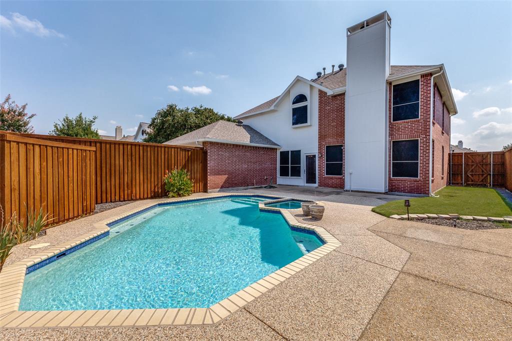 Step outside to a private backyard featuring a refreshing pool, separate spa, and a grassy area—perfect for entertaining, relaxing, or outdoor fun year-round.