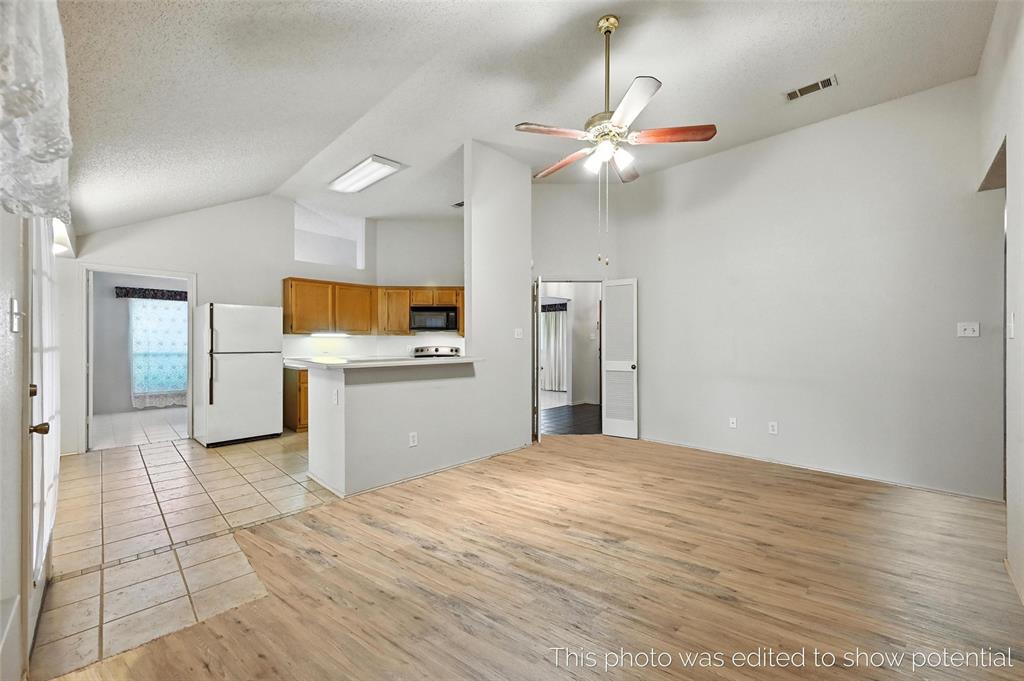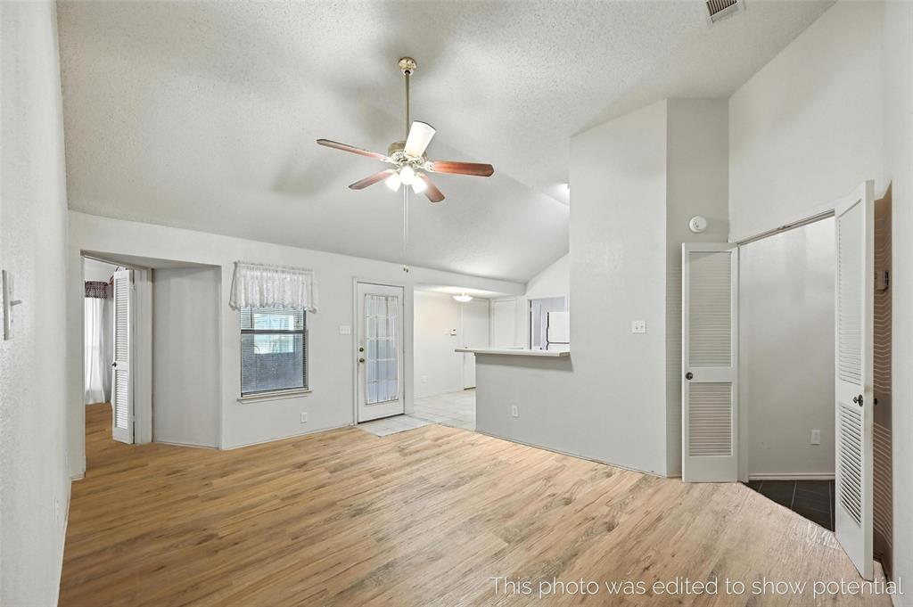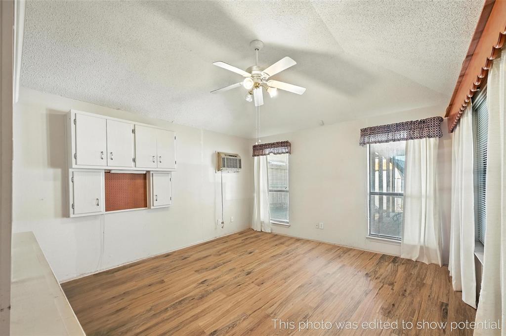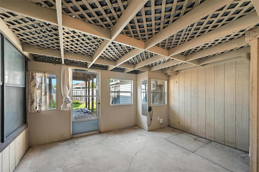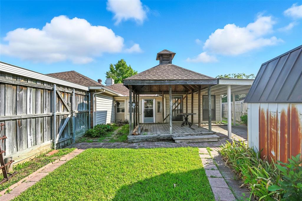 THIS IS WHERE YOUR HOMEOWNERSHIP STORY BEGINS! This home offers so much potential. Perfect investment property or starter home! Just bring your paintbrush and a little imagination, this is the perfect place to start building Sweat Equity from day one. With 4 generous sized bedrooms, 2 bathrooms, there’s plenty of room to grow. High ceilings and an open concept kitchen and living area create a bright, inviting space. Formal living room and dining room are centered around a wood burning fireplace. Enjoy your morning coffee in the sunroom or relax beneath the gazebo in your private backyard! Plus, there’s a large shed for extra storage, perfect for tools, toys, or outdoor gear. Cyclist & walkers will love Rowlett Creek Nature Preserve, Katie & Springfield Park. Schedule a showing today!
