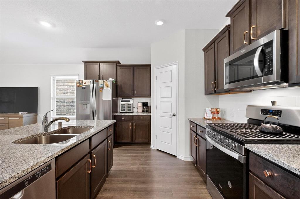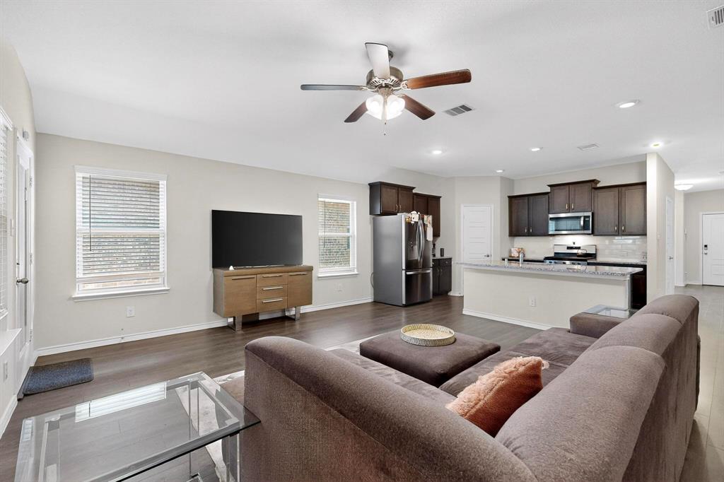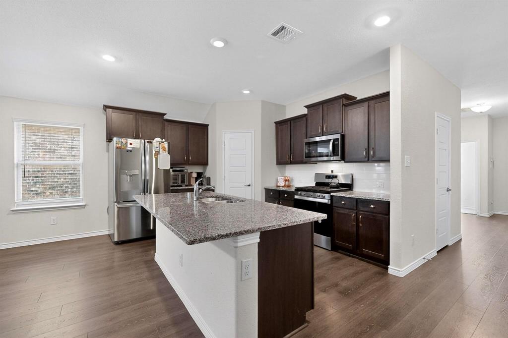 Welcome to this beautiful 4-bedroom 3-bath home with an office that offers an open floor plan with spacious living and dining areas, a modern kitchen with granite countertops, subway tile, stainless steel appliances with gas range and ample cabinet space. The primary suite features dual sinks, walk-in shower and large closet. Additional guest bedroom with adjacent bath plus two more bedrooms and an office. Step outside to your backyard retreat with covered patio, perfet for relaxing or entertaining. Located n the highly sought-after Williamsburg community with easy access to I-30, shopping, dining, and highly rated Rockwall ISD schools. Enjoy the community pool, club house, parks, fitness center, and more. Don't miss this opportunity, schedule a showing today! Refrigerator, Washer & Dryer are for sale if buyer would like to purchase them.