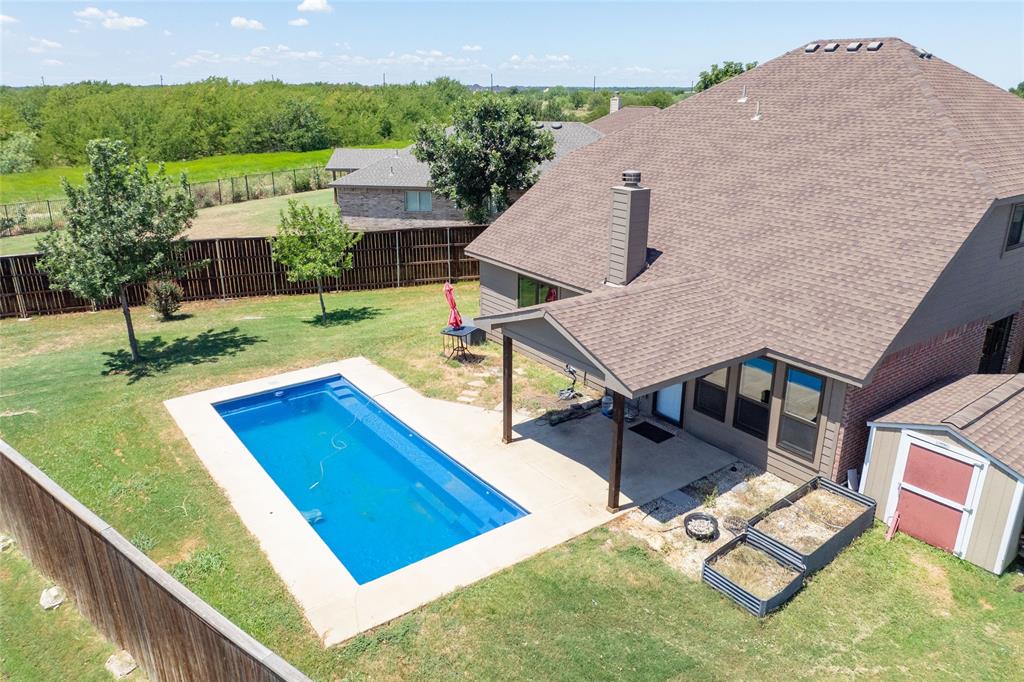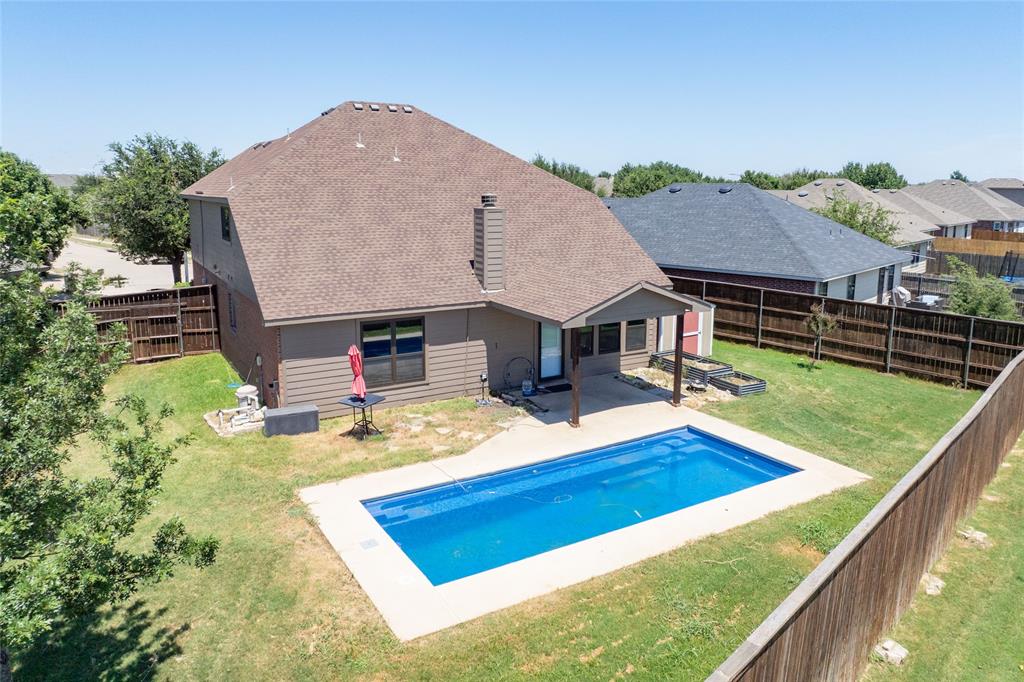 Welcome to your own private oasis, tucked away in one of Justin’s best-kept secret neighborhoods! Wow your guests with your decorating and design skills displayed in your formal dining room right off the front entry. At the end of the day, retreat to your spacious primary suite sanctuary with a spa-like ensuite. Enjoy the luxury of double vanitiy, separate shower and soaking tub, and a walk-in closet. The open-concept kitchen, breakfast nook, and living room are perfect for everyday living and entertaining. That is just the first floor! Upstairs, you'll find a spacious second living area that can serve as a game room, media space, or playroom—plus three well-sized secondary bedrooms that offer comfort and privacy for guests or family. All windows are upgraded 2 inch thick sound reduction, and tinted for less heat done in 2025. Outside of the homes was painted in 2024. As if the location, the neighborhood, and the home itself were not enough, then there’s the backyard! Step outside and into your own personal paradise with a sparkling in-ground pool and covered patio—a true escape from the Texas heat and the perfect spot to unwind, entertain, or make memories all summer long. Custom 8 ft fence is 3 years old, with a 3 year old AC Unit for upstairs. Roof is about 4 years old, and the pool is was done about 7 years ago with a pool pump that was replaced in 2025 with variable speed. Nestled within the top-rated Northwest ISD, this thriving community offers exceptional schools for your family. Enjoy easy access to the excitement of the Texas Motor Speedway, or indulge in retail therapy at the nearby Tanger Outlet Mall. This unbeatable location puts you just minutes from the best of DFW—convenient to both Dallas and Fort Worth. Don’t miss your chance to own this rare gem! Don't miss this opportunity to have your dream home in a prime location with America's Builder!