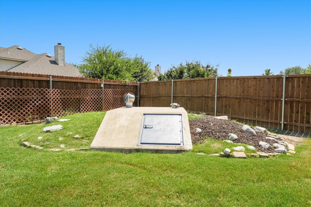 Step out back to enjoy a covered porch for outdoor living. Rest easy with the rare, in-ground storm cellar — a highly sought-after feature in Texas.