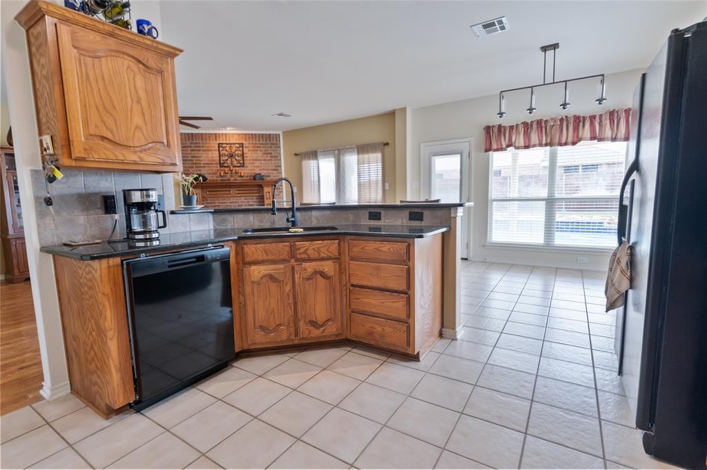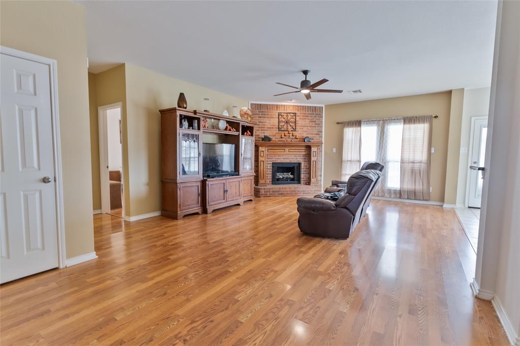 The spacious family room features stylish Pergo laminate flooring, a cozy fireplace, and a classic mantle, perfect for relaxing or gathering with guests. Just off the main living area, the kitchen impresses with generous cabinet storage, ample counter space, granite countertops, a new gas cooktop, and a new dishwasher, making it both beautiful and highly functional.
