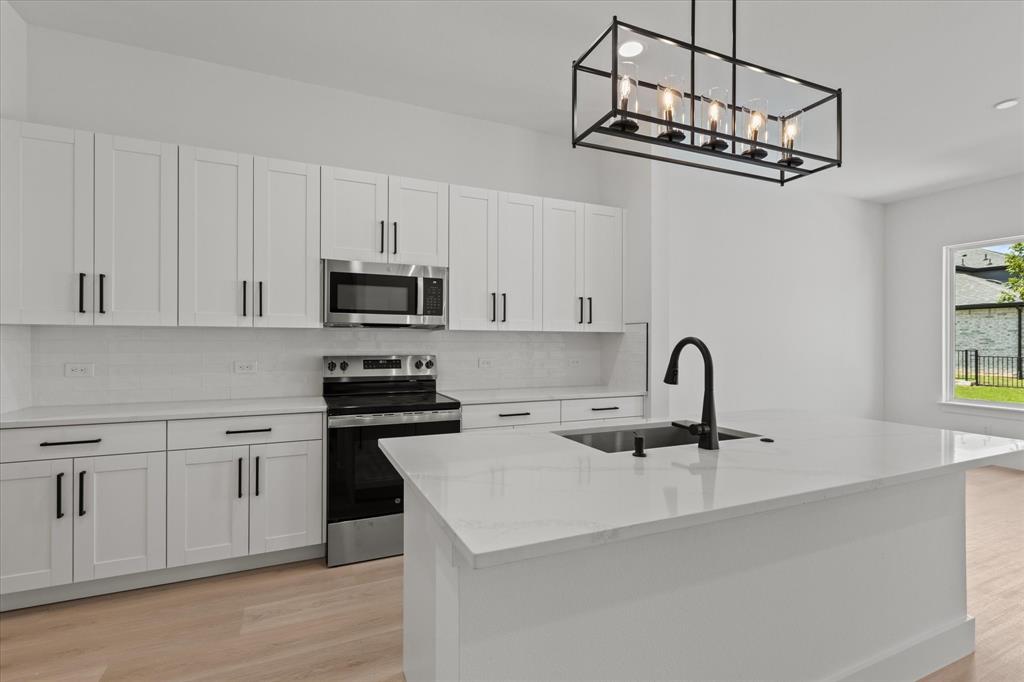 Inside, the open-concept floor plan is filled with natural light and designed with modern finishes throughout. The main floor features durable and stylish LVP flooring, creating a seamless flow through the spacious living area and into the contemporary kitchen. Enjoy cooking and entertaining with a large center island, beautiful quartz counter-tops, stainless steel appliances, and an inviting eat-in dining space.