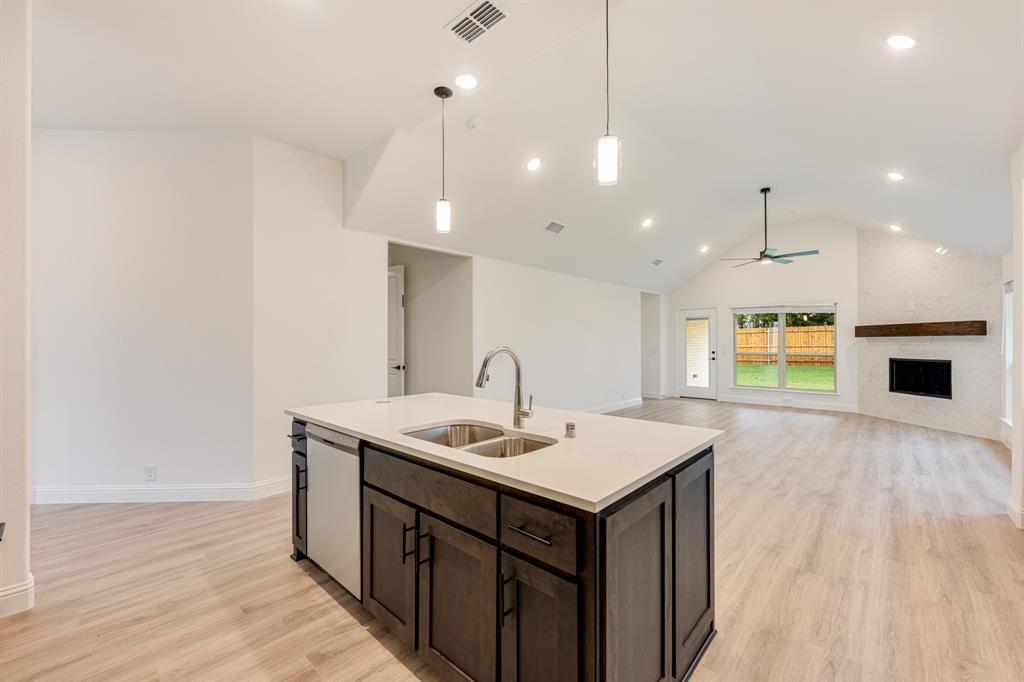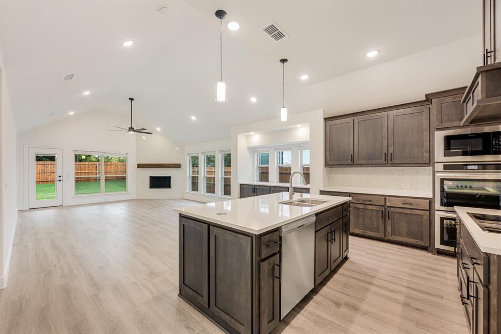 NEW! NEVER LIVED IN. Move-In READY AUGUST! Bloomfield Homes' Hawthorne SE is a thoughtfully crafted one-story home offering 4 bedrooms, 2 bathrooms, and a side entry 2-car garage nestled on a beautiful homesite with a covered front porch and back patio for year-round enjoyment. Inside, the open-concept layout is elevated by vaulted ceilings, 8’ interior doors, and a stunning tile-to-ceiling fireplace that serves as the centerpiece of the spacious Family Room. Natural light flows through the large windows, highlighting the clean lines and elegant finishes throughout. The all-electric Deluxe Kitchen features a central island perfect for barstools, chic Level 5 quartz countertops, stainless steel appliances (including a double oven), custom cabinetry with upgraded storage, and an open flow into the dining and living areas. The Primary Suite offers a peaceful retreat with Level 4granite countertops, dual sinks, garden tub, and a separate shower with a bench seat. A study and 3 additional bedrooms are well-sized and privately positioned. Additional highlights include a cedar garage door, 2-inch faux wood blinds, a custom front door, a landscaping package, and energy-efficient features throughout. With its blend of comfort and style, this Hawthorne SE checks every box. Come visit Ridgepoint and experience the perfect mix of modern living and timeless design—this home is ready to welcome you!