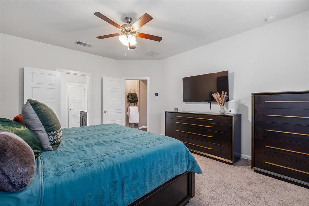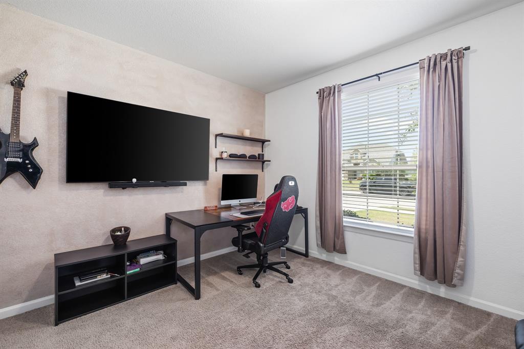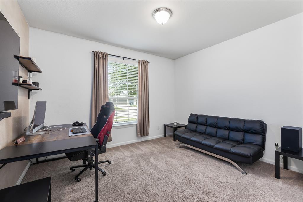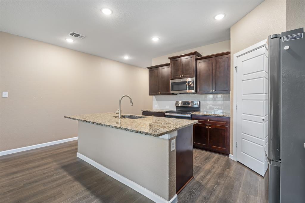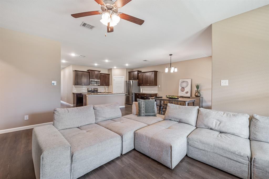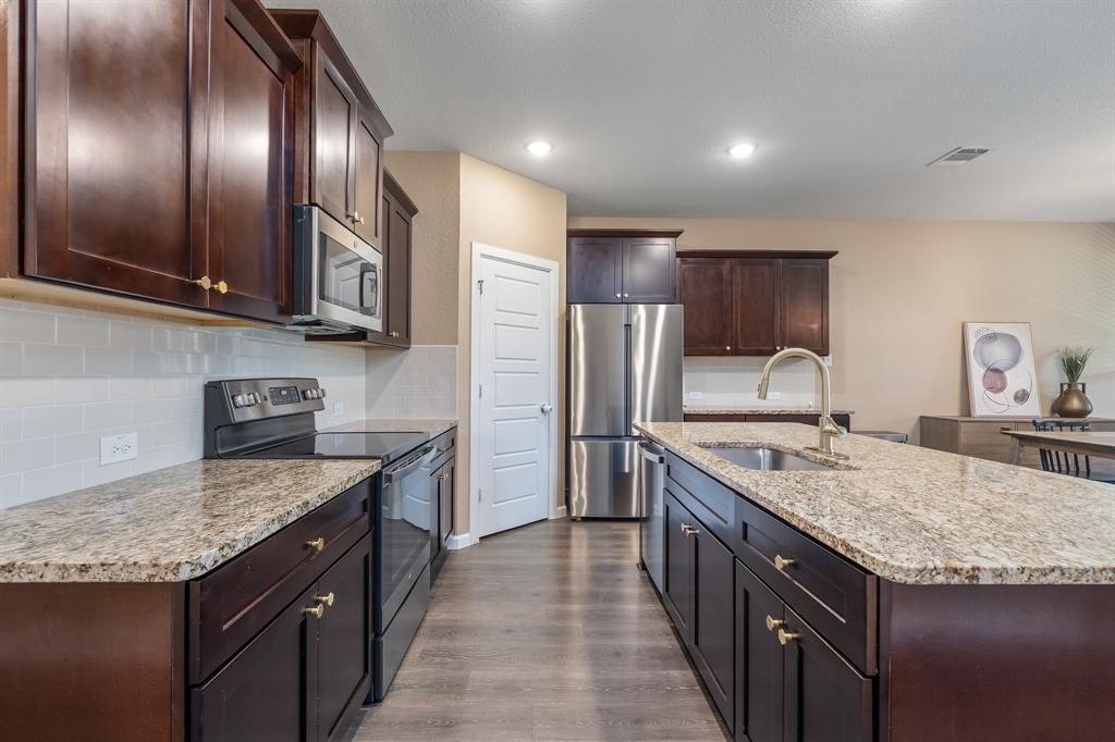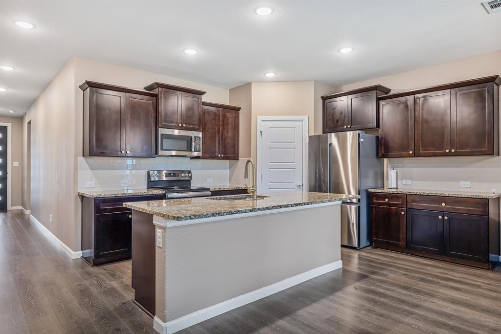 Stunning one-story, 4-bedroom home that perfectly blends comfort, style, and functionality. From the moment you step inside, you’ll notice the bright and inviting open-concept floorplan. The spacious living room features a cozy fireplace that creates a warm and welcoming atmosphere. Adjacent to the living area is a gourmet kitchen that will inspire your inner chef. It’s fully equipped with stainless steel appliances, including a smooth cooktop range. The kitchen also boasts a convenient breakfast bar, perfect for casual meals or morning coffee, and elegant granite countertops that provide ample workspace. The oversized owner’s retreat is a true sanctuary, offering privacy and luxury in equal measure. It features dual sinks that make morning routines easier, a relaxing garden tub where you can unwind after a long day, a separate shower for added convenience, and a custom-designed closet that provides plenty of storage space for your wardrobe and accessories. In addition to the owner’s suite, there are three additional bedrooms that offer versatility to suit your lifestyle. One of these rooms, located at the front of the home, is perfect for a home office, study, or guest room, providing flexibility whether you work from home or need extra space for visitors. Step outside to enjoy the gorgeous covered patio, an excellent spot for outdoor dining, relaxing with a book, or entertaining guests. The large backyard offers plenty of space for play, gardening, or future landscaping projects, making it a wonderful extension of your living space. This home is conveniently located near shopping centers, a variety of dining options, and community amenities such as scenic trails, basketball courts, park, splashpad and soccer fields ensuring you have everything you need within easy reach. Truly a MUST SEE!