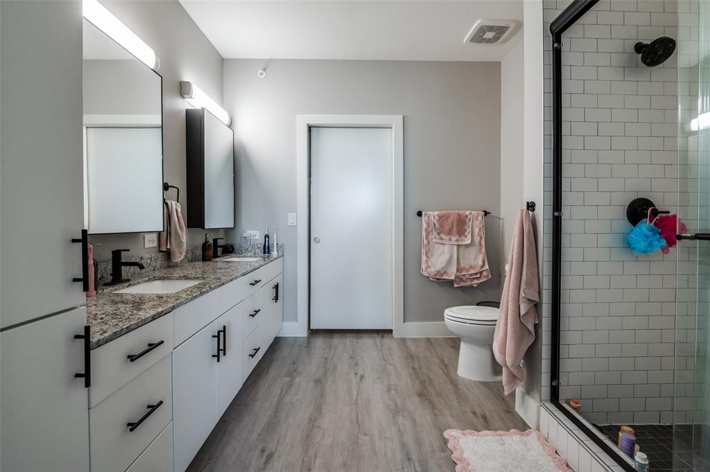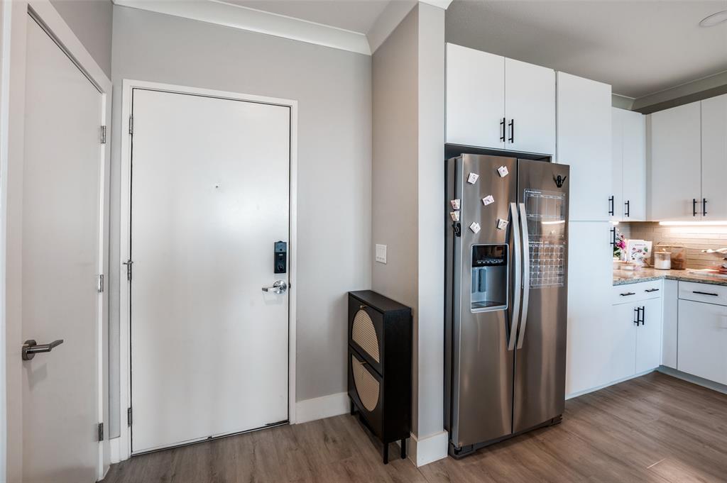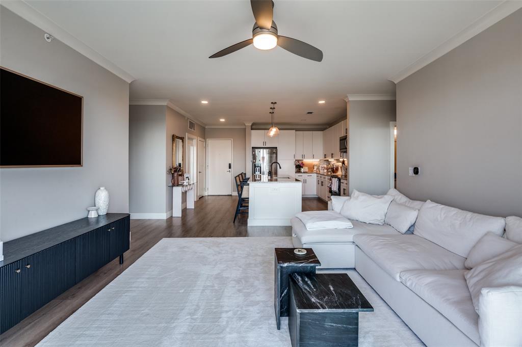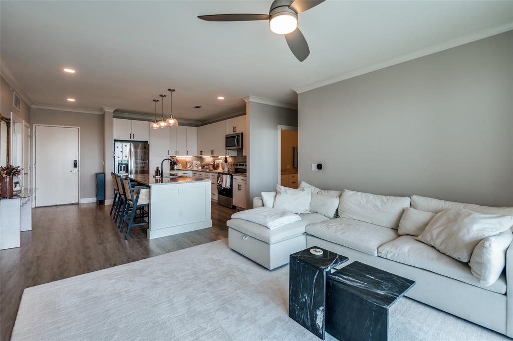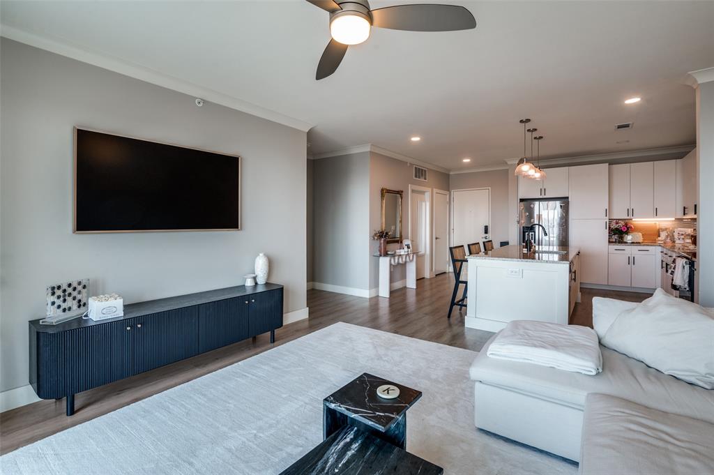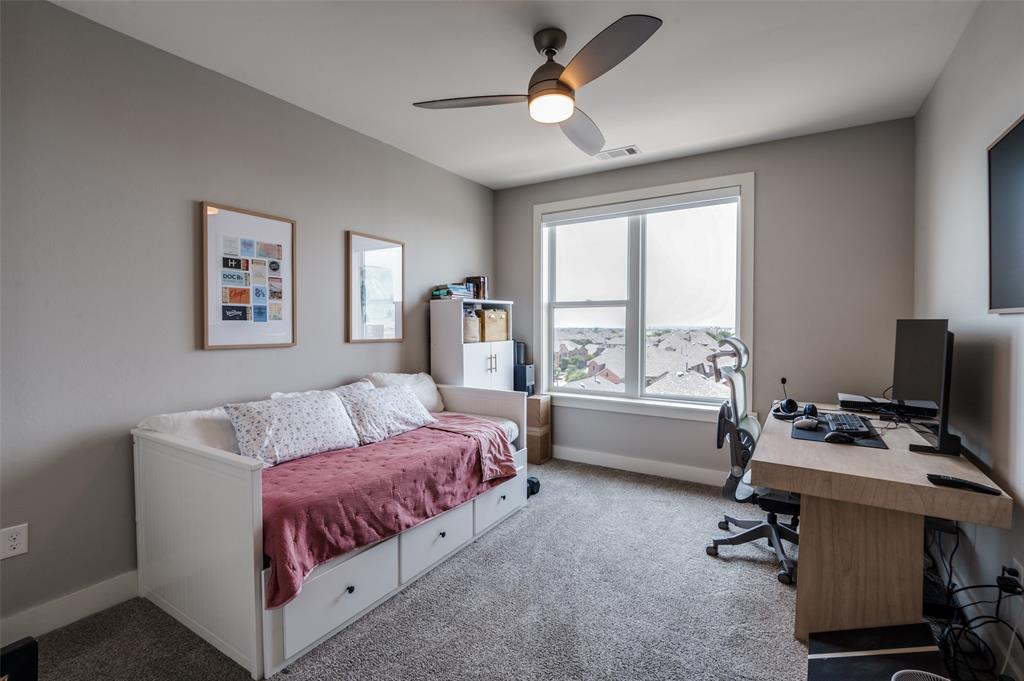 Experience luxury condo living and a low maintenance lifestyle at Sojurn At The Realm in Castle Hills just minutes from Grandscapes, Top Golf, Hawaiin Falls Waterpark, shopping, dining, entertainment and much more!! This 2 bedroom unit is located on the 4th floor and offers wide open city views from the covered & private balcony! The main living area features an open concept floor plan with LVP flooring, light colors, modern design features, and a wall of windows that provide tons of natural lighting. The kitchen is equipped with granite countertops, designer backsplash, white cabinets and large center island with room for bar stools. The private primary suite offers beautiful views, a large bath with walk in shower, dual sinks & a large walk in closet! The second bedroom can be used for guests, as a flex space or as a private office and does have a full bath! Additional features include a covered garage parking spot plus a designated carport parking spot as well as a large storage unit conveniently located in the garage to store your belongings! Easy access to Dallas North Tollway, Highway 121, and close proximity to both Lovefield and DFW airports. Don’t miss out on this gorgeous condo and schedule your appointment today!!!